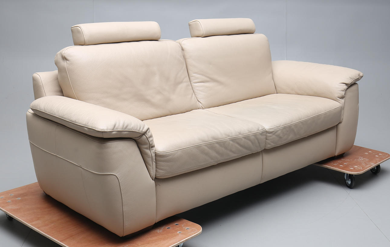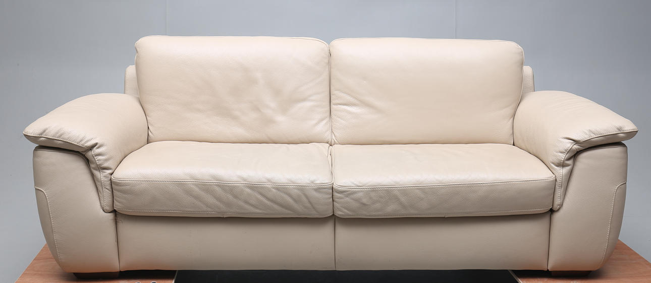 Æggeskalsfarvet. 2 medfølgende nakkestøtter. Dunfyld i fjer og sæde. Længde 230 cm.