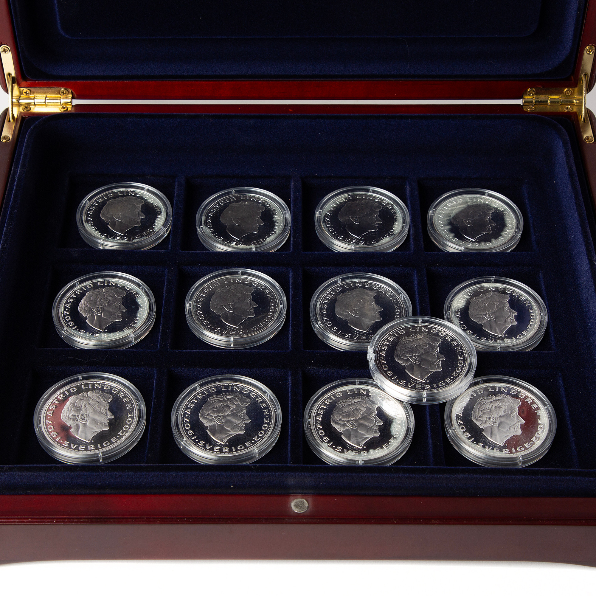 4072778. JUBILÆUMSMØNTER, 13 stk., sølv, Astrid Lindgren, 2002.