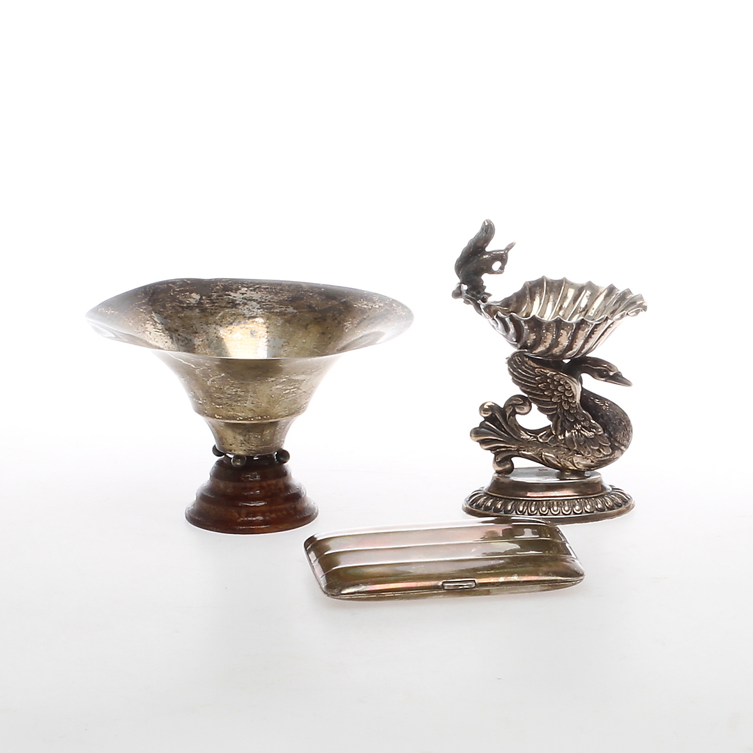 407312. SKÅL, CIGARETETUDE, ASKEBÆK, sølv.