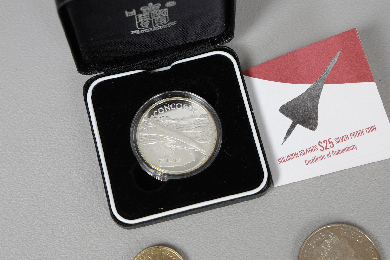 4075060. SØLVSIKKER CONCORDE $25 MØNT SAMMEN MED.
