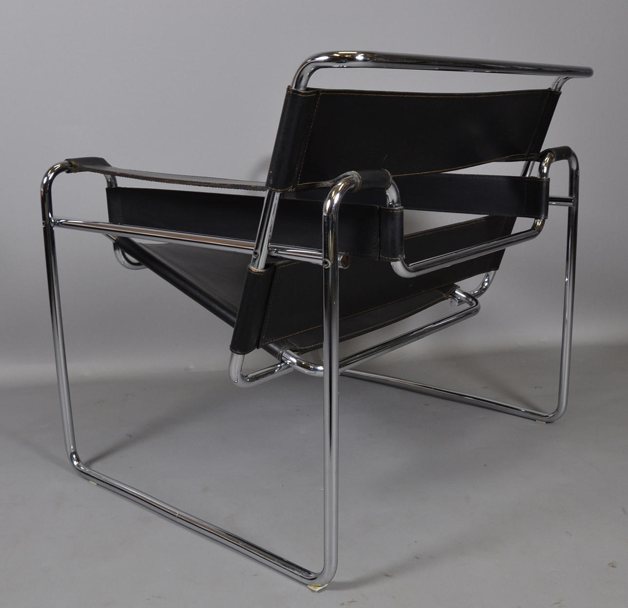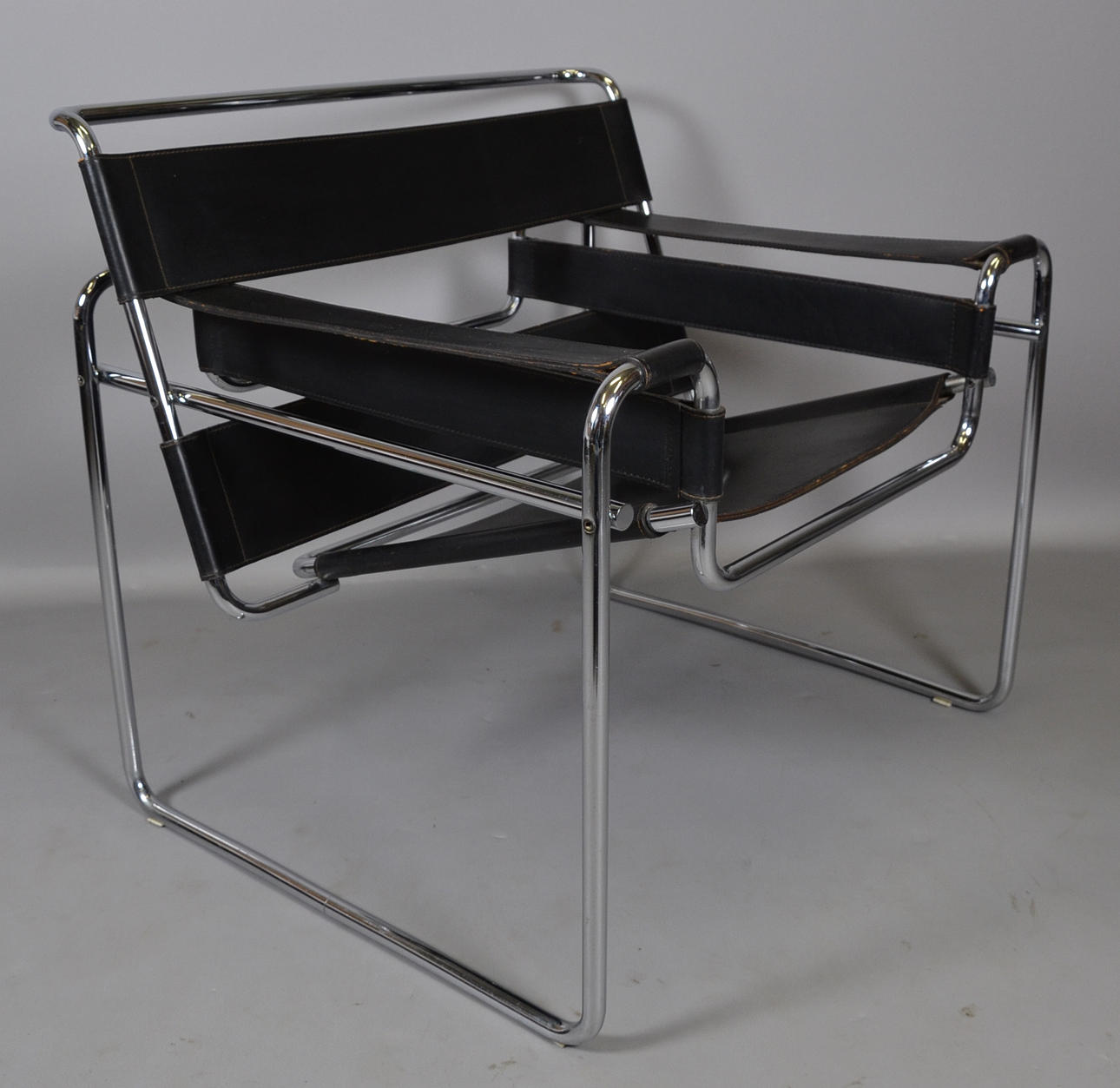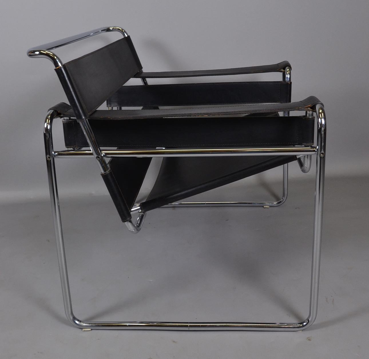 Design Marcel Breuer 1925 Gavina formentlig produceret før 1968 Forkromet stel med sort butt læder betræk.