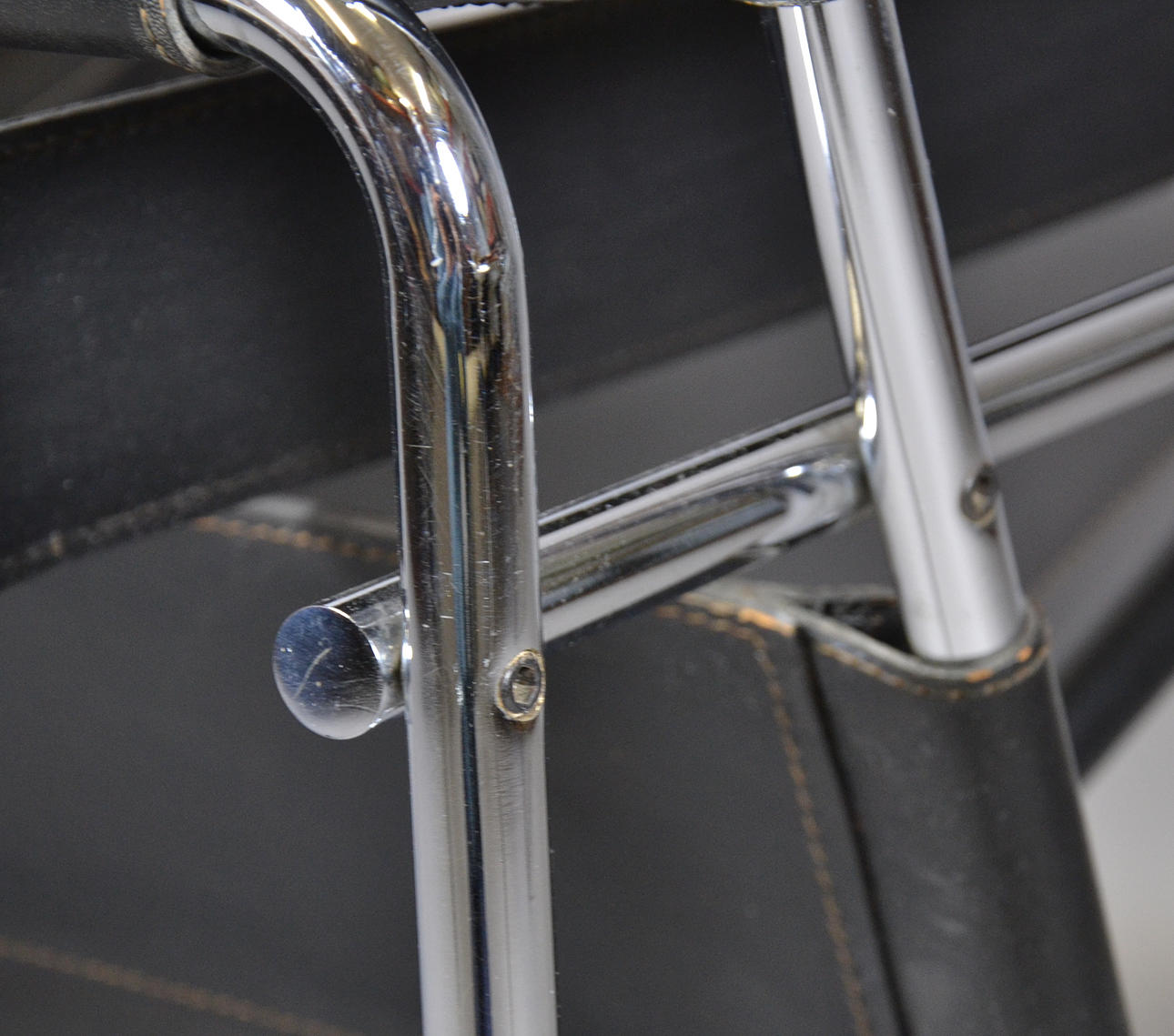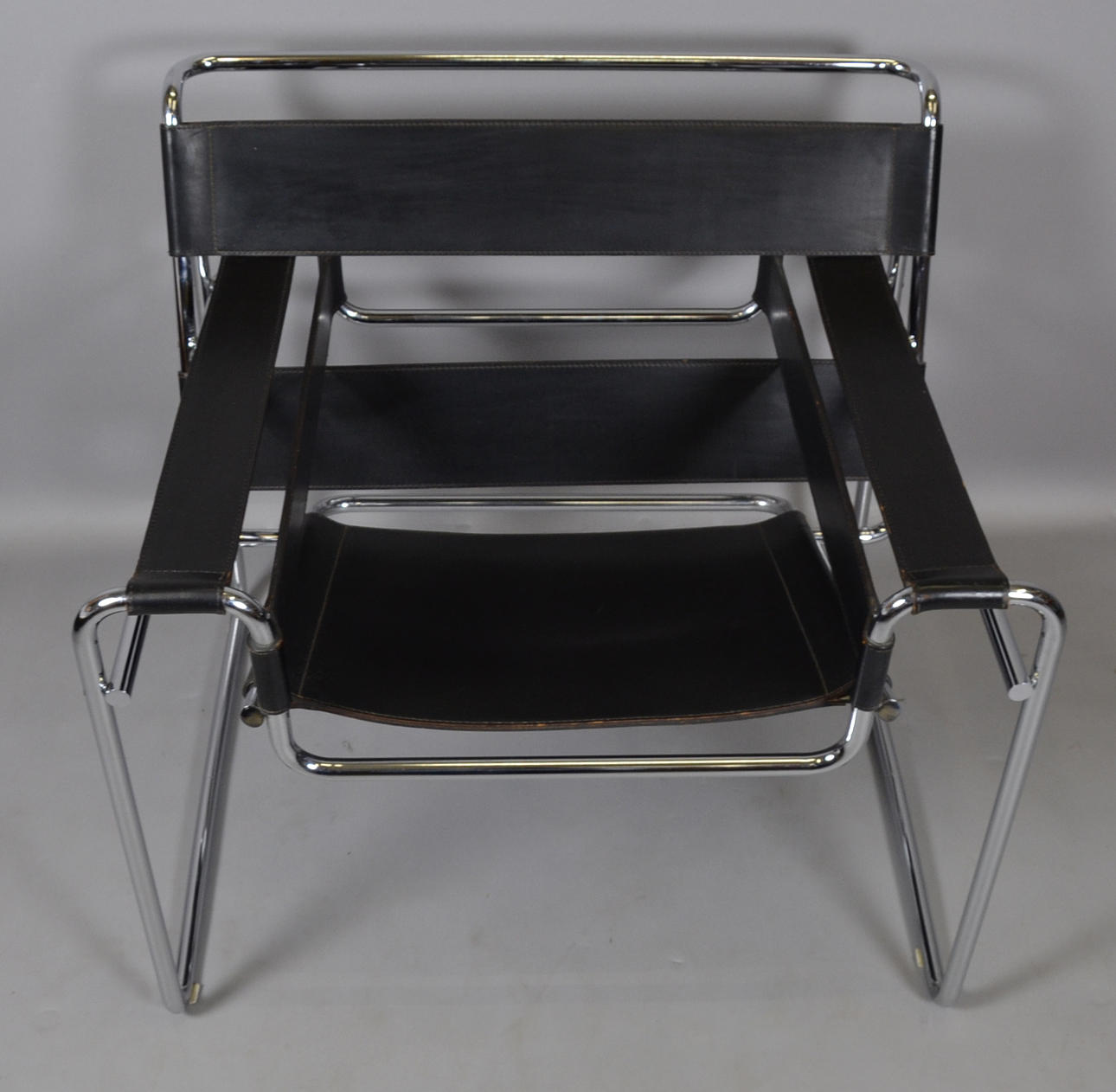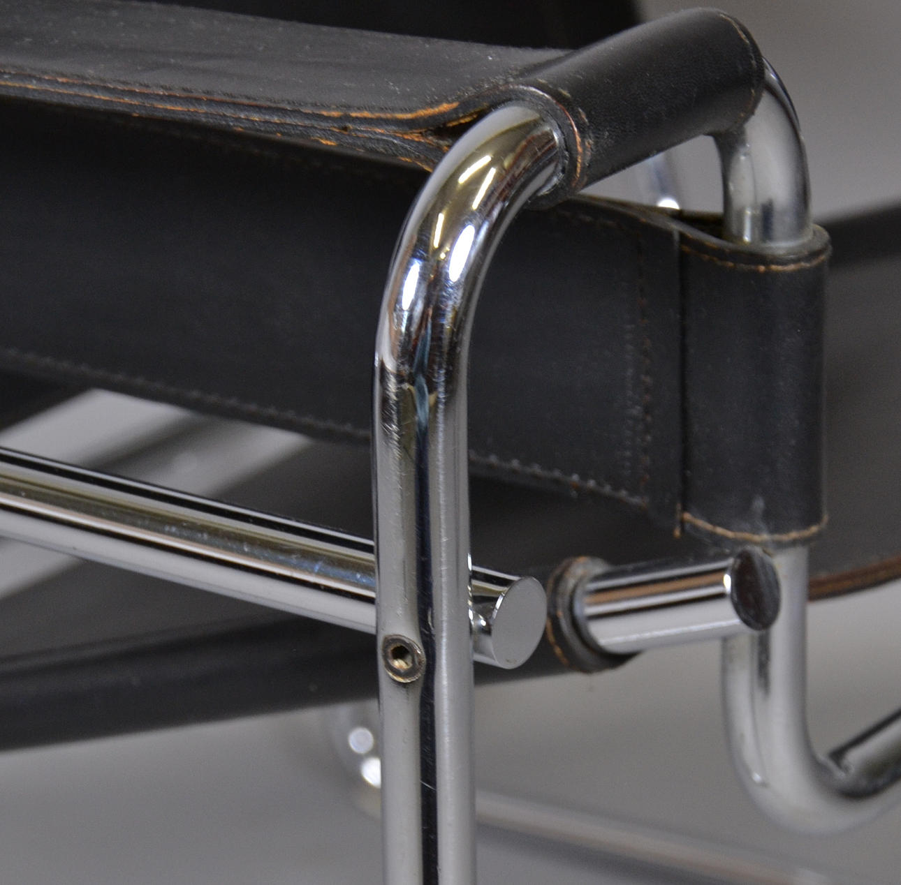 Design Marcel Breuer 1925 Gavina formentlig produceret før 1968 Forkromet stel med sort butt læder betræk.