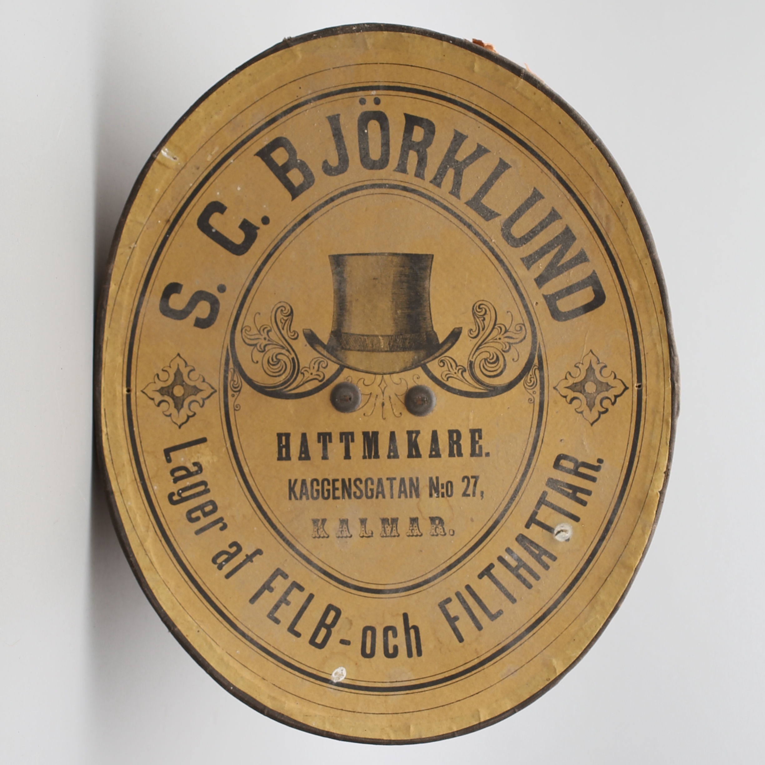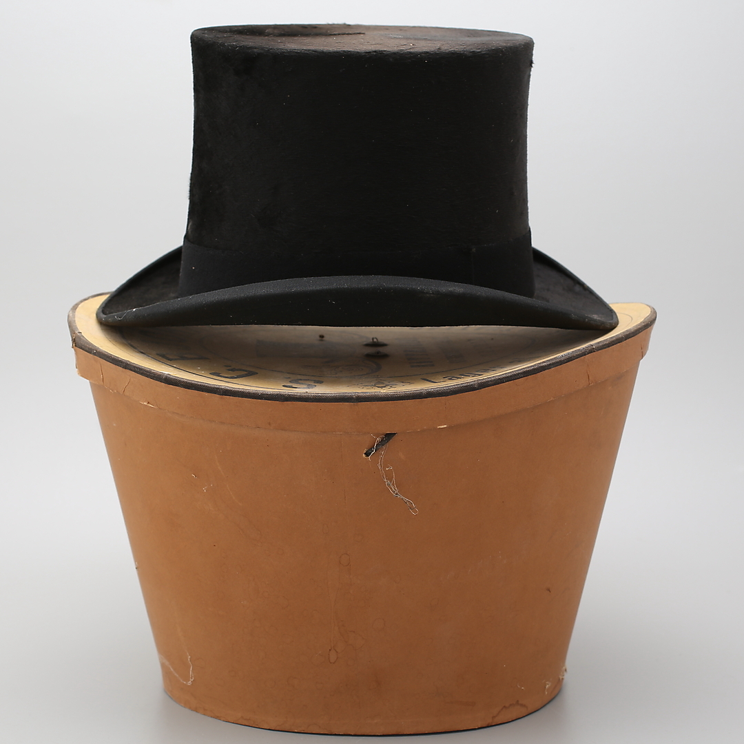 408016. STOR HAT i hatteæske, London.