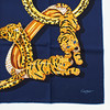 I silkeville med udsmykning af juvelerede dyr mod dybblå bund med lys kant, mærket „Cartier Paris“ og med etiket, mål ca. 88x87cm.