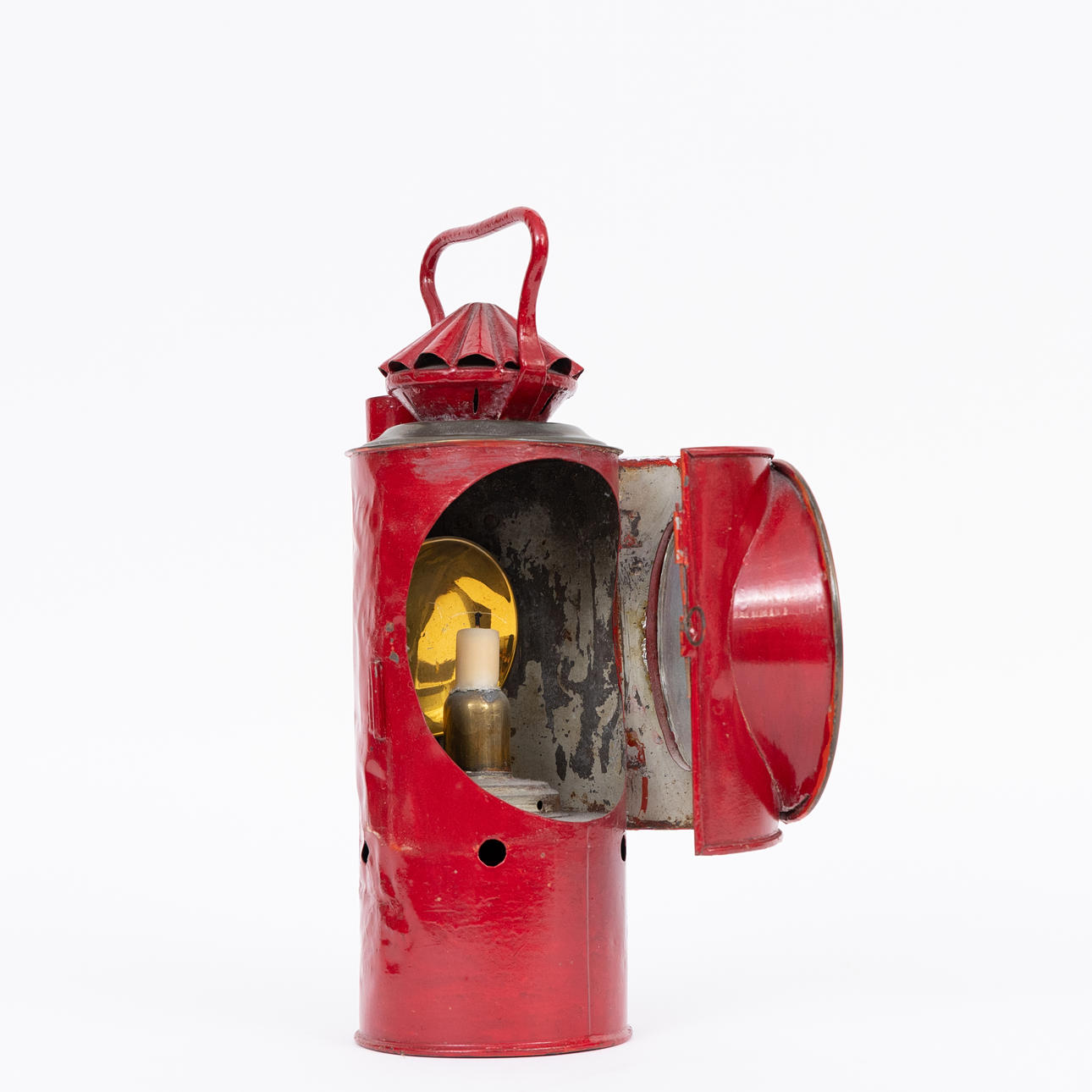VOGNSLAMPE, malet metalplade, 20. århundrede.