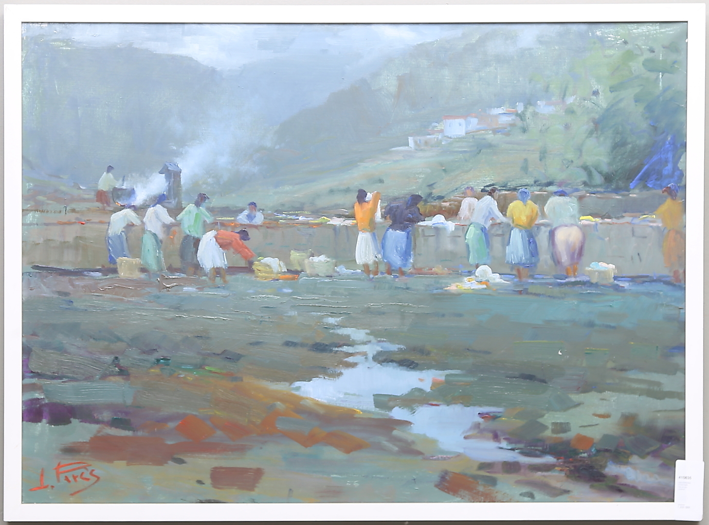 410835. OIDENTIFIERAD KONSTNÄR. Olie på lærred, signeret.