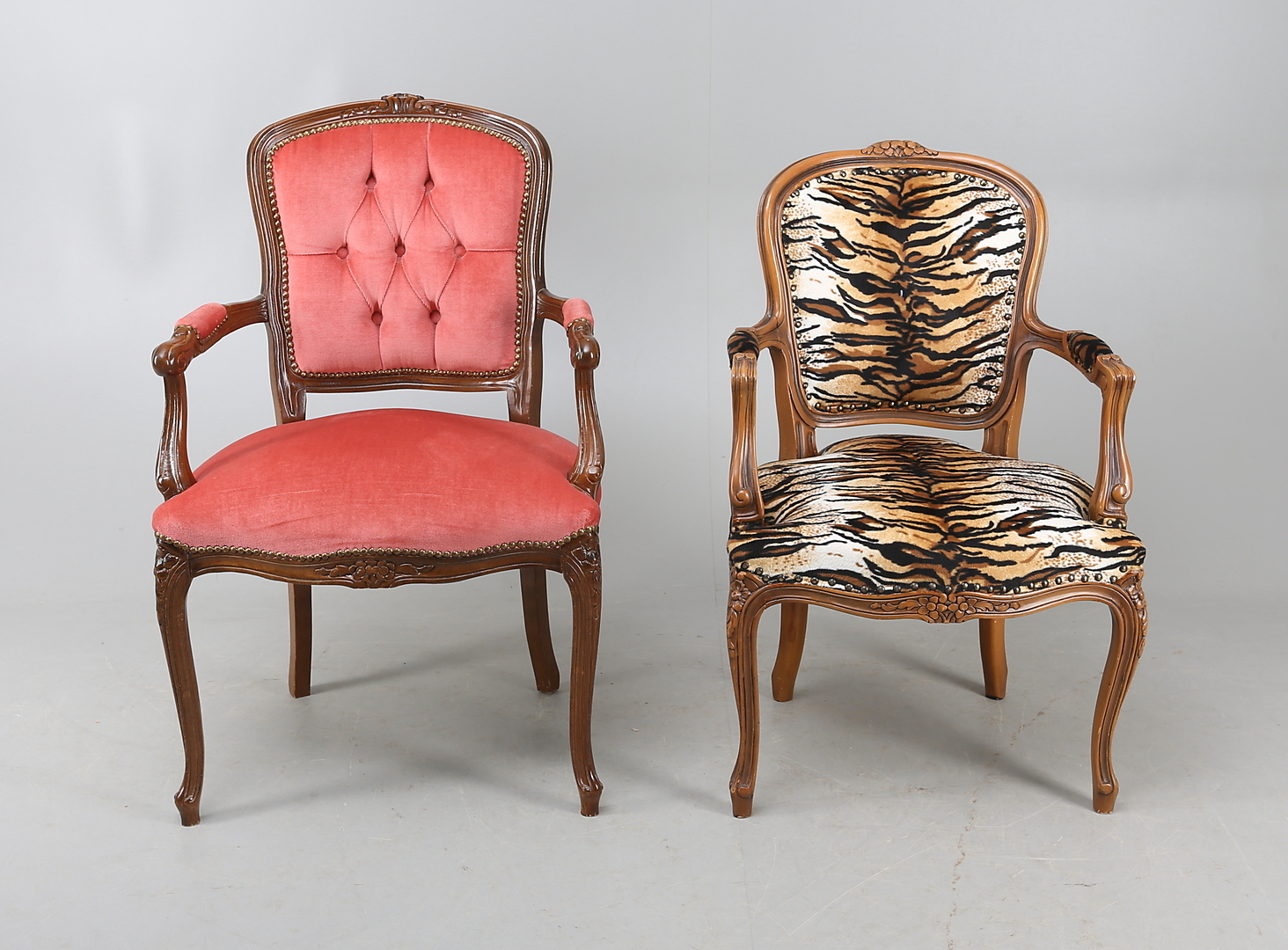 411087. LÆNESTOLE, 2 stk, rokokostil, 1900-tallet.
