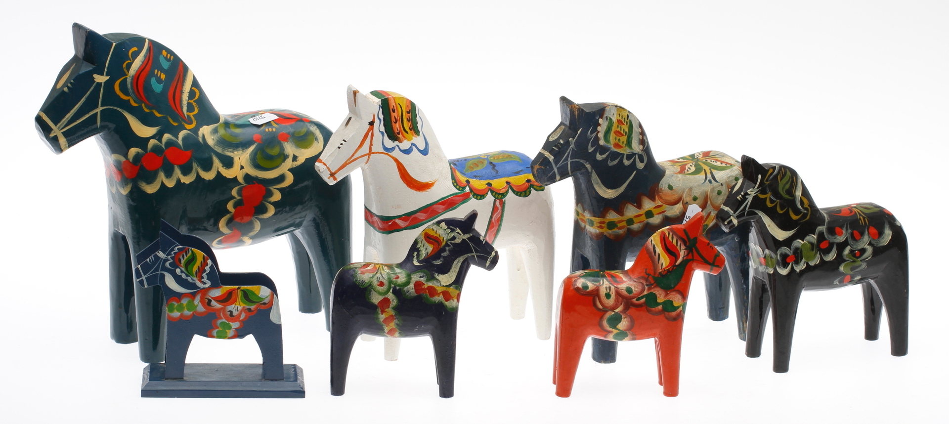 41115. DALA HESTE, 6 stk og servietstativ.