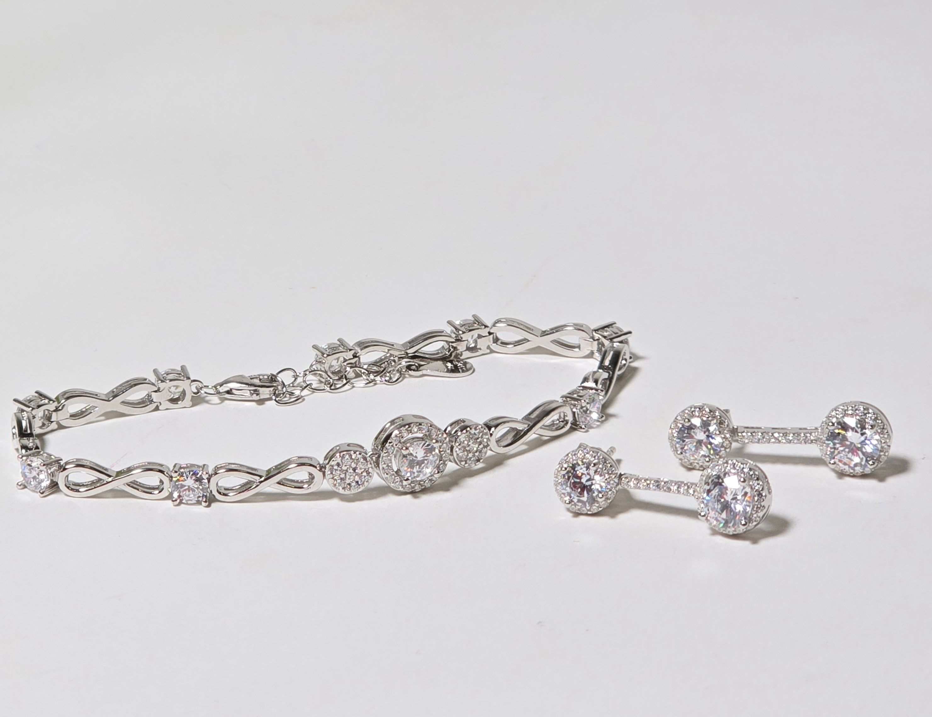 4111536. AFTAGELIGT SØLV ARMBÅND OG ØRERINGE.