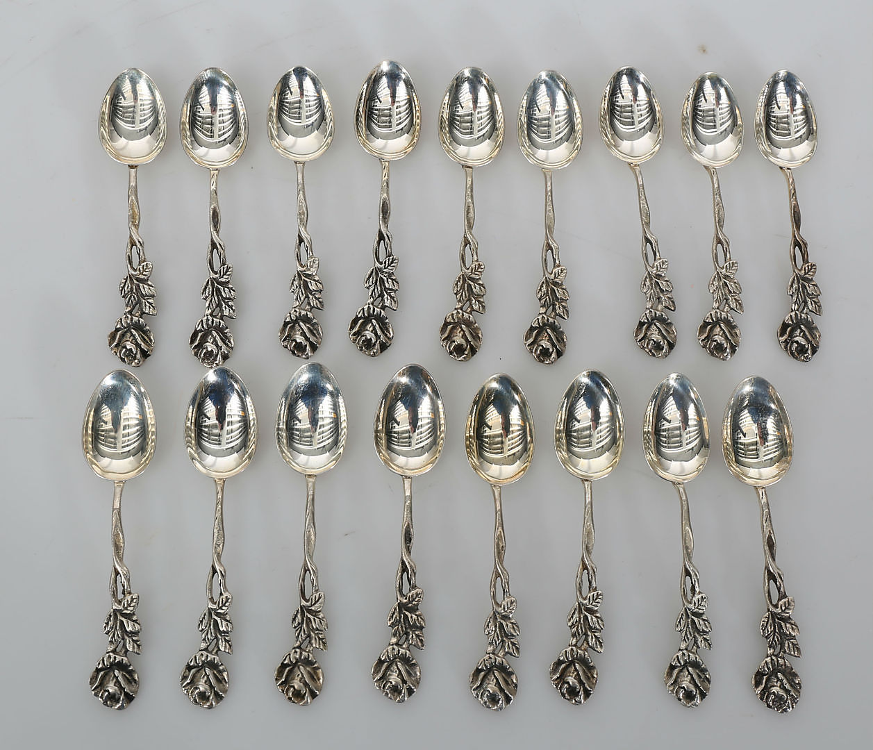 411196. RUSKSKÆER, sølv, "Rosen", 17 stk., 128,4 gram.