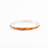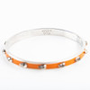 Stiv armring i belagt metal med orange emaljedekoration i form af kranier i hvidt metal. Markeret indeni. Omkreds ca. 19 cm. Bredde ca. 5 mm.