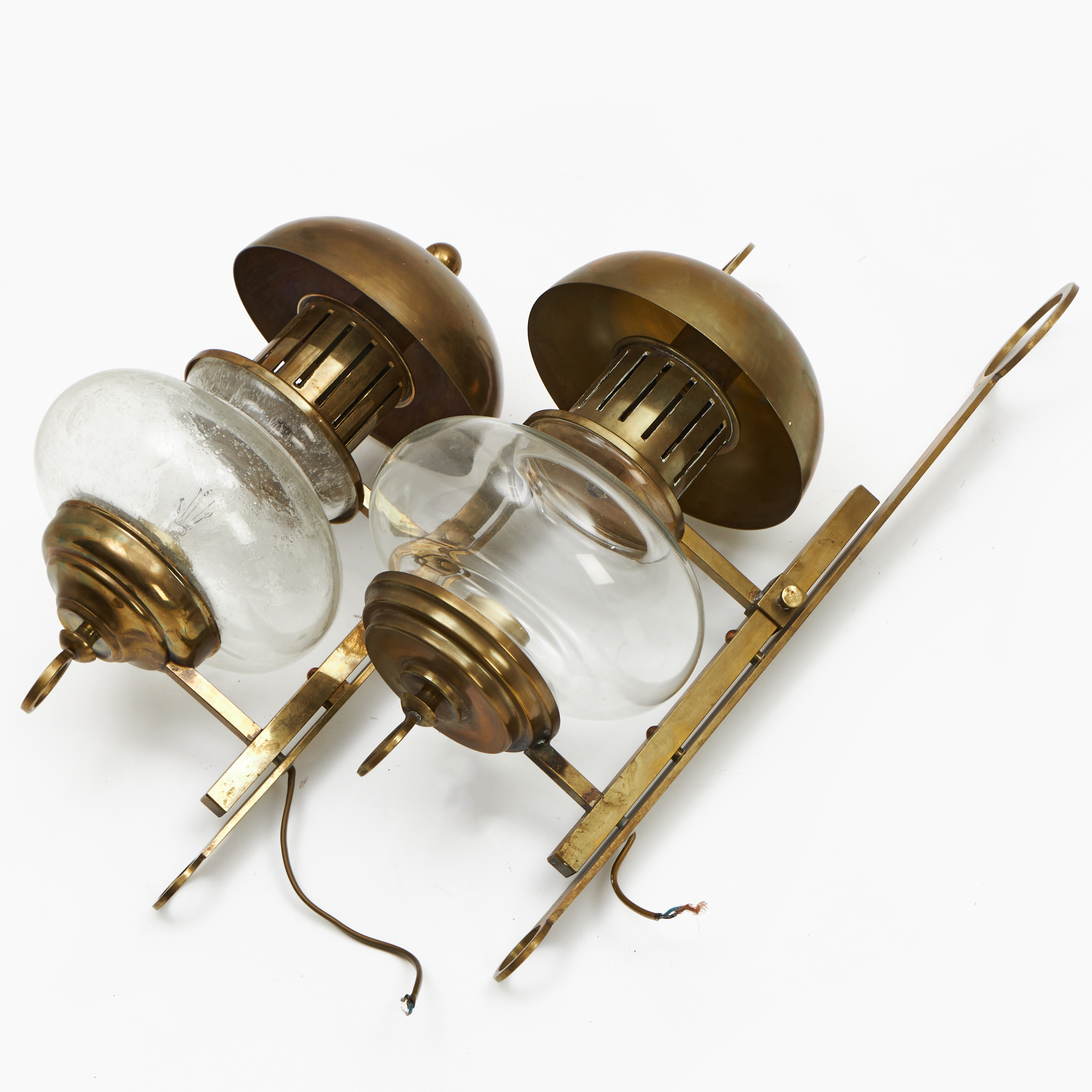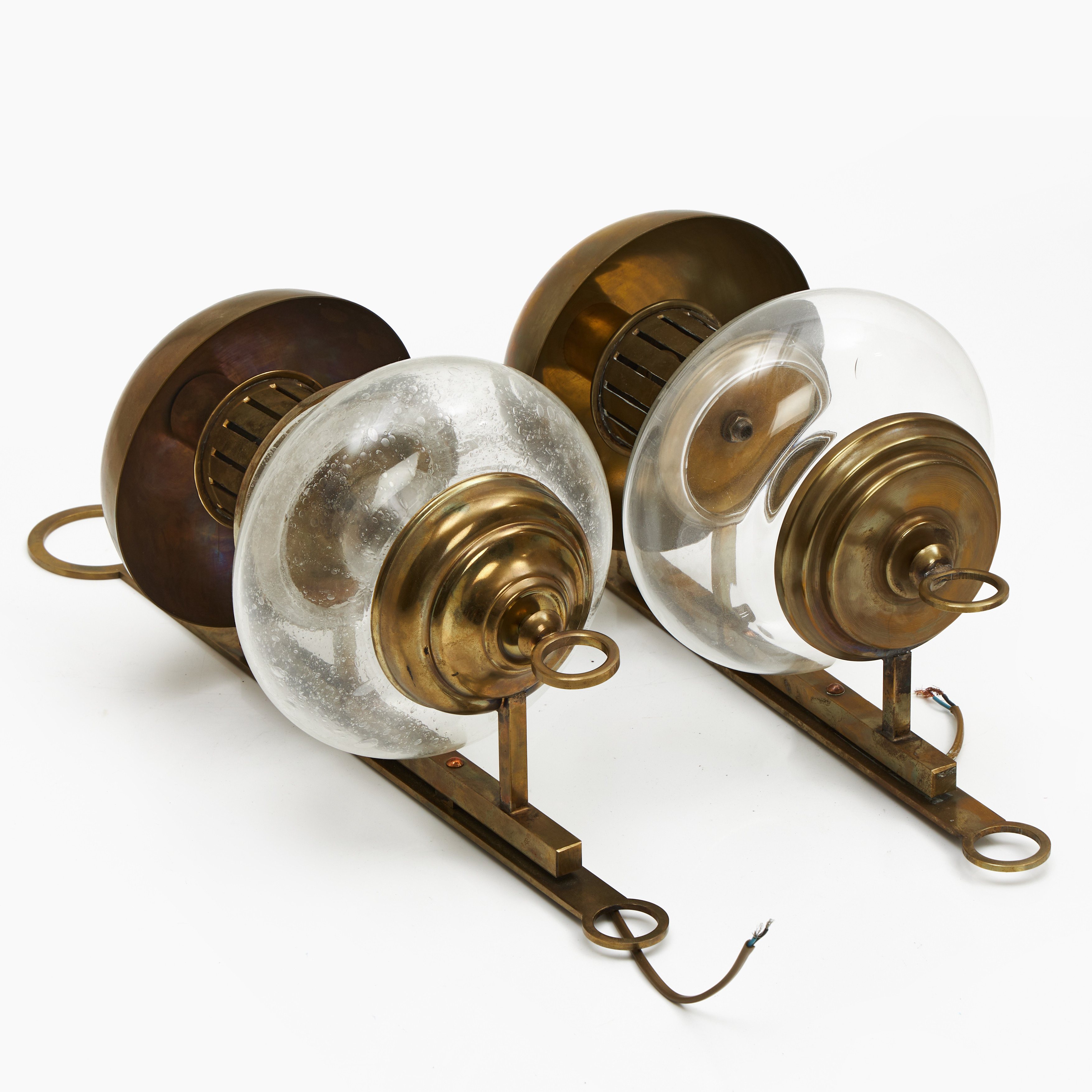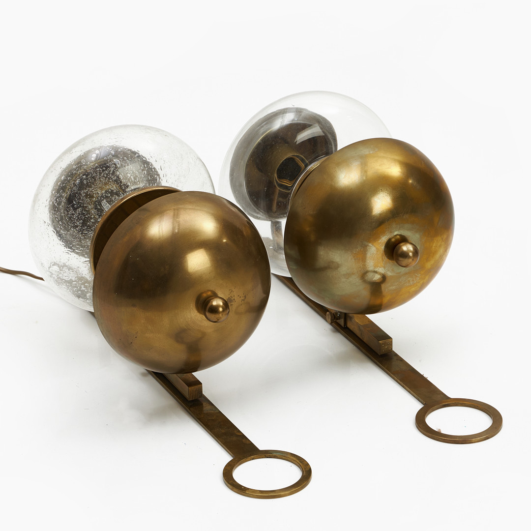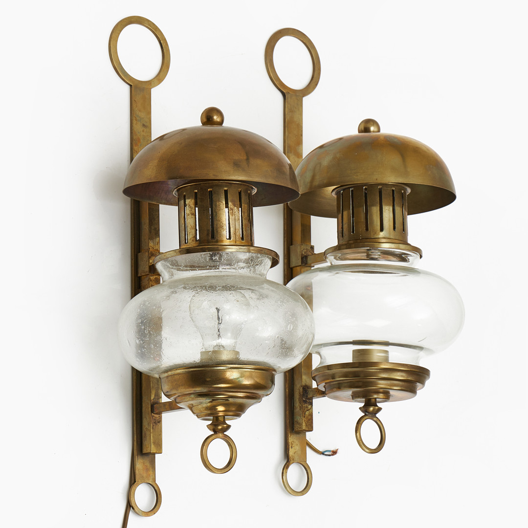 4123886. VÆGLAMPER, et par, messing, glas.