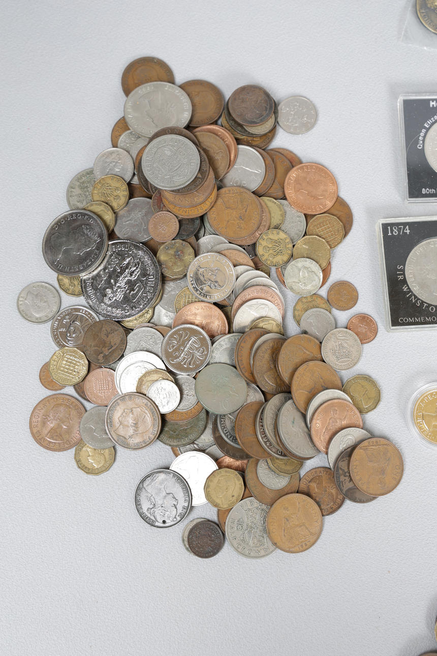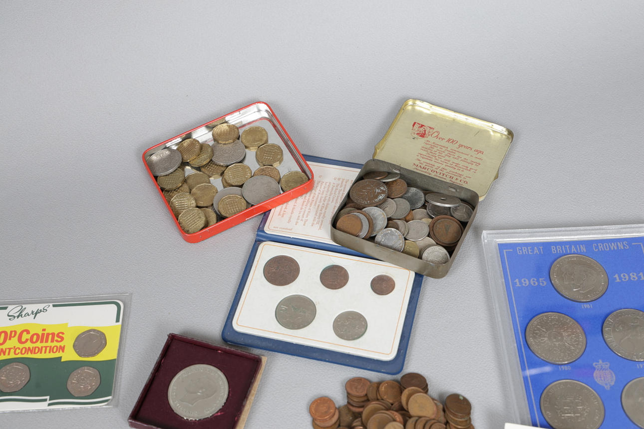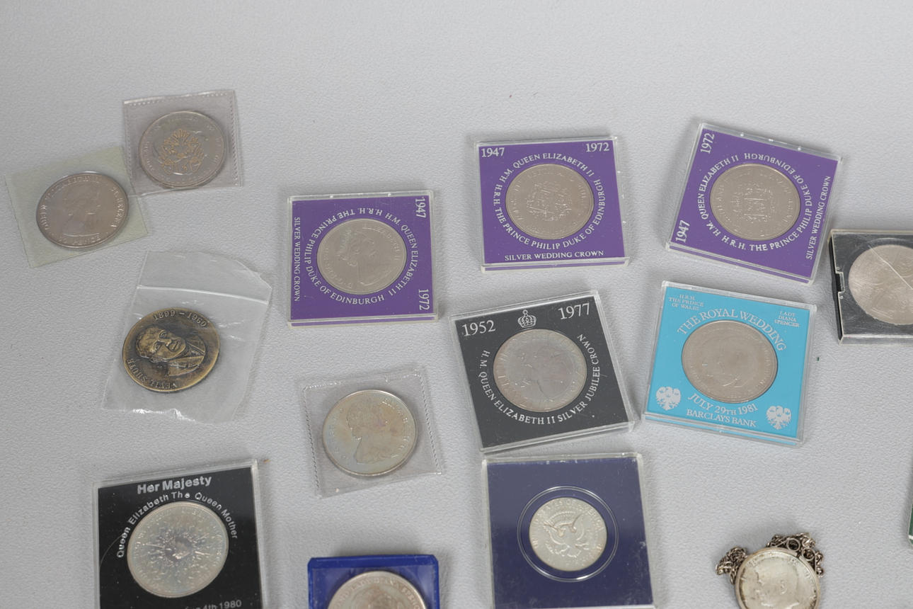 til inkluderet £2-mønter, 1951 Festival of Britain Crown, erindringskroner sammen med en stor samling eller GB og europæiske mønter.