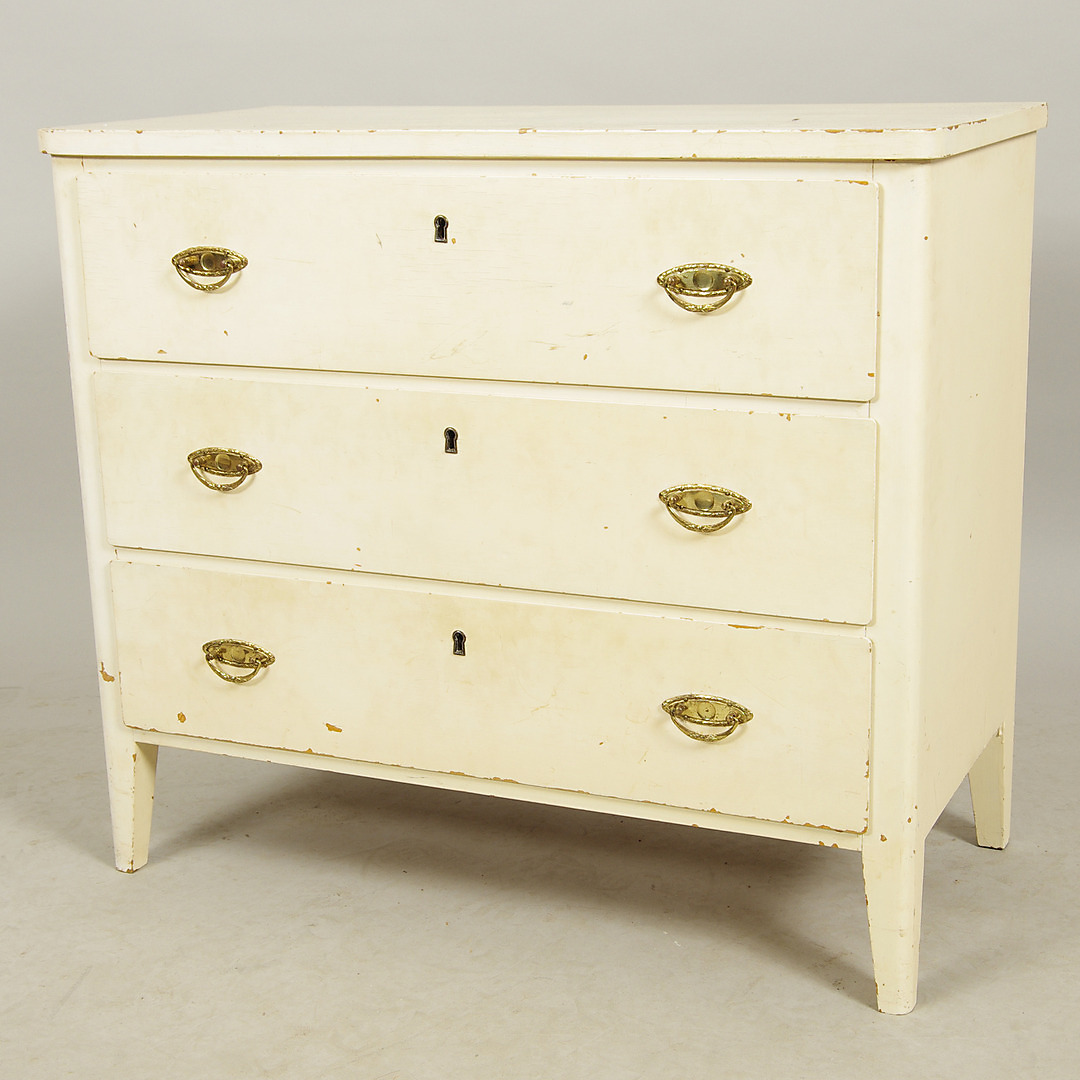 412440. Kommode, 3-boks, hvidmalet, midten af 1900-tallet.