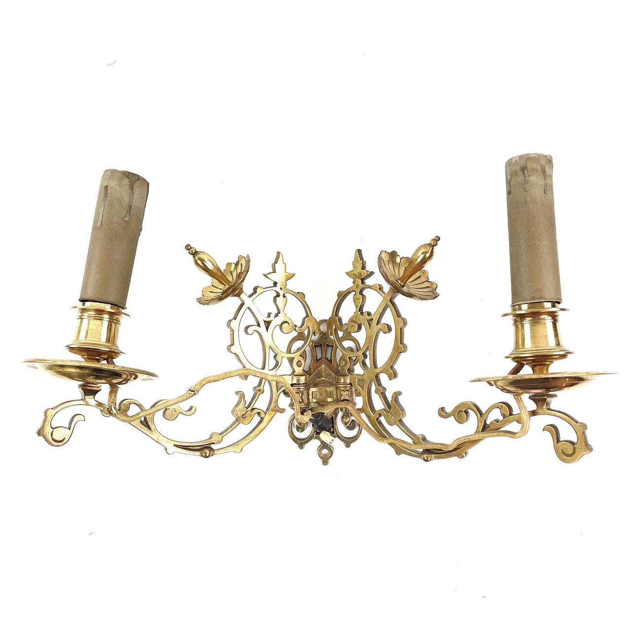 STEARINLYS/VÆGLAMPER, 1 par, messing.