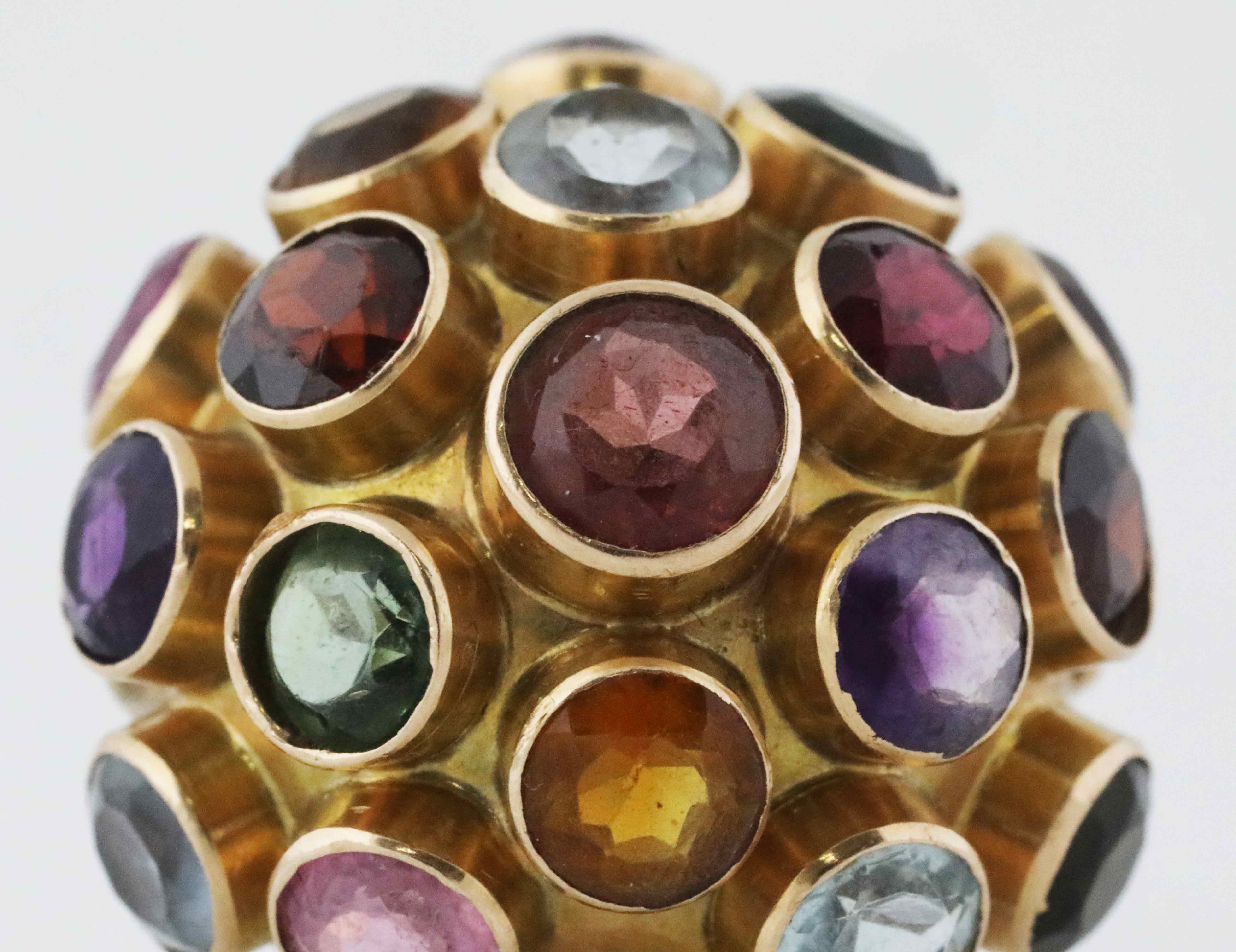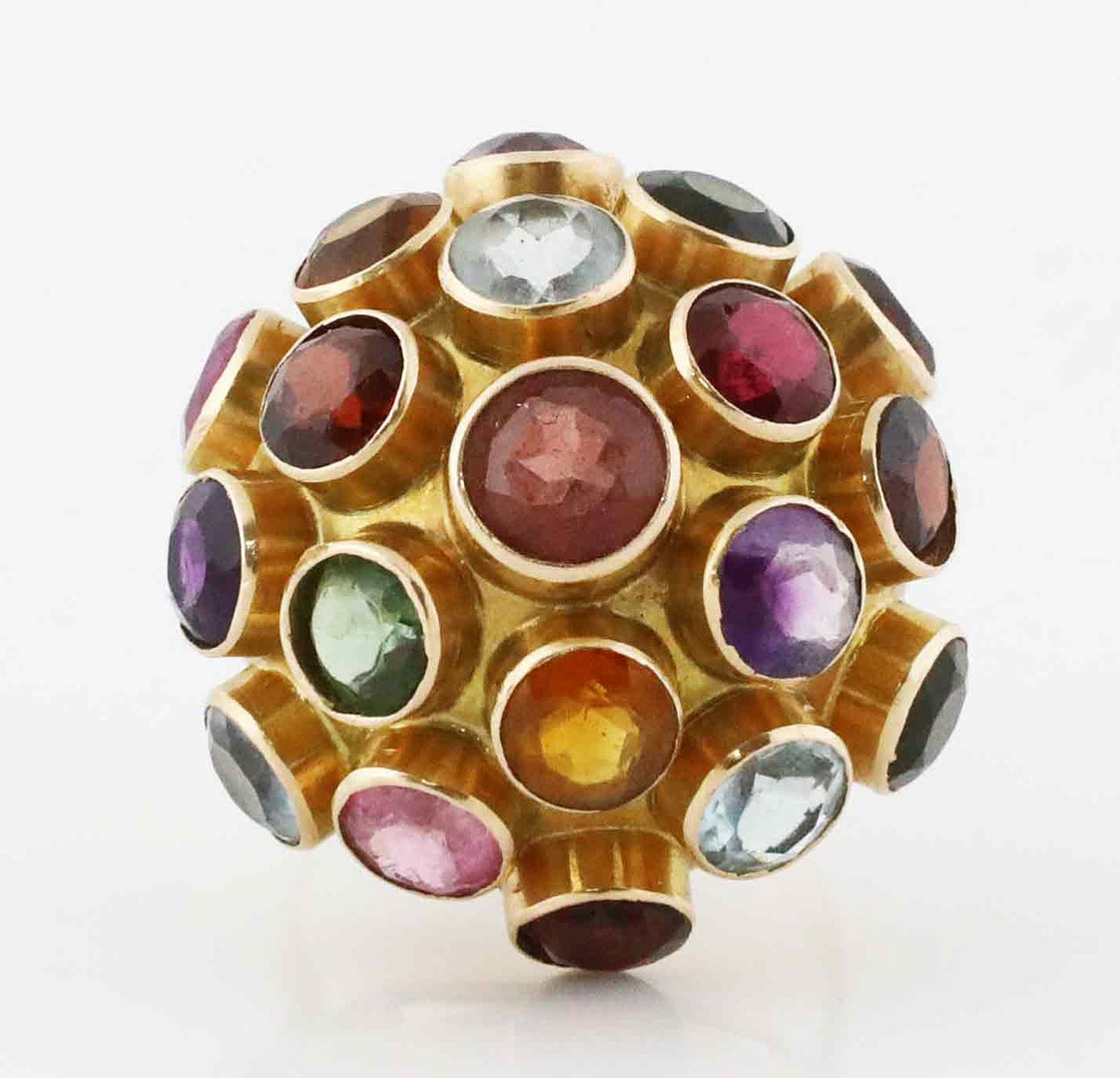 4127015. RING, Sputnik model, guld 14K, forskellige farvede halvædelsten.