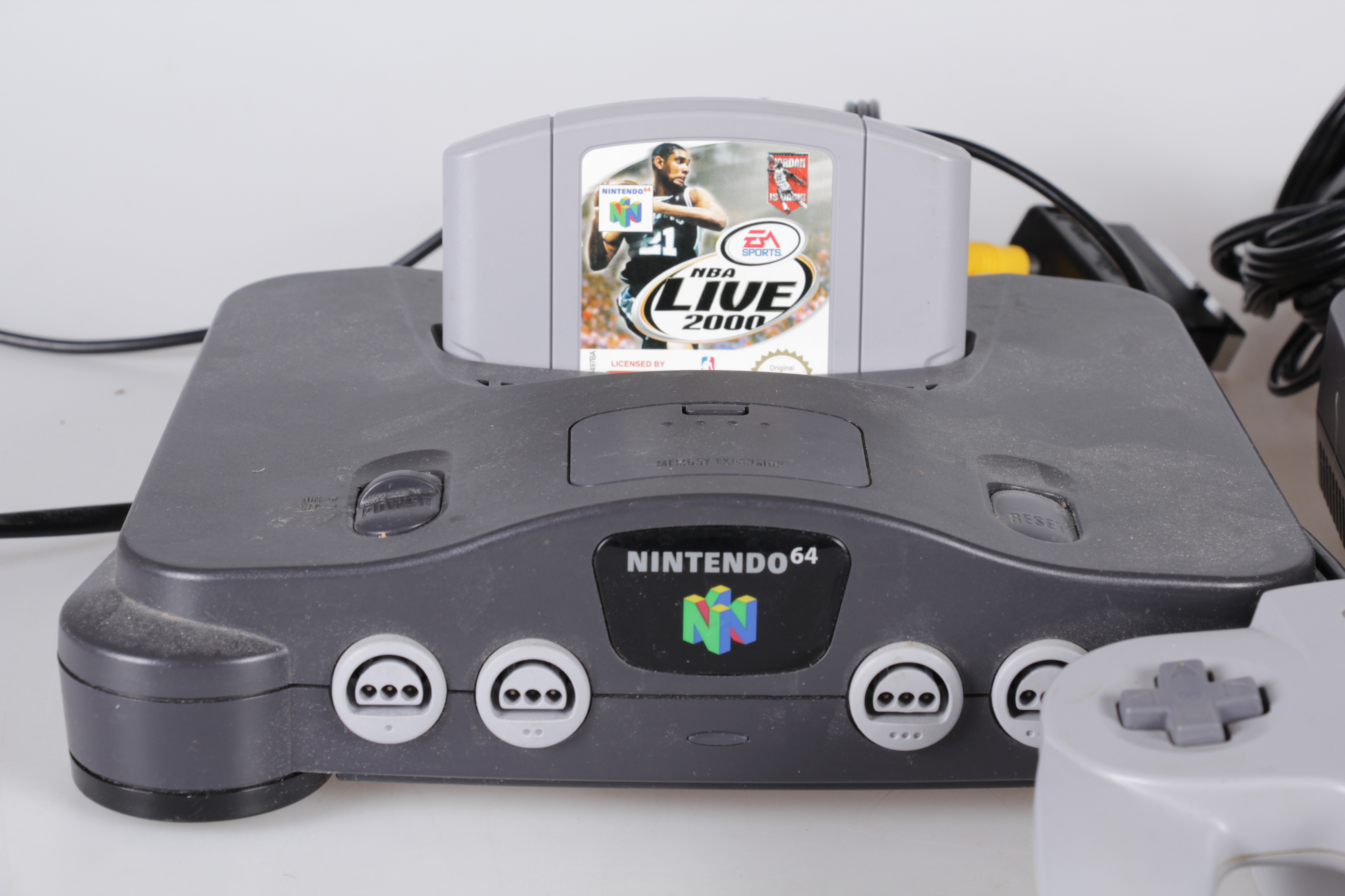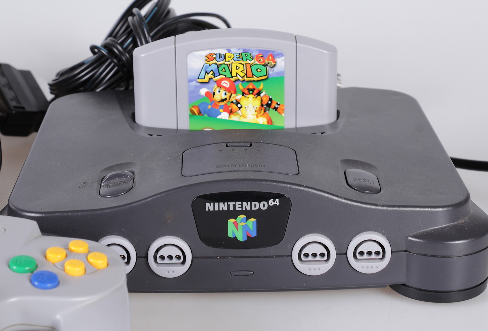 412846. SPILKONSOL, og spil, 7 dele, Nintendo 64.