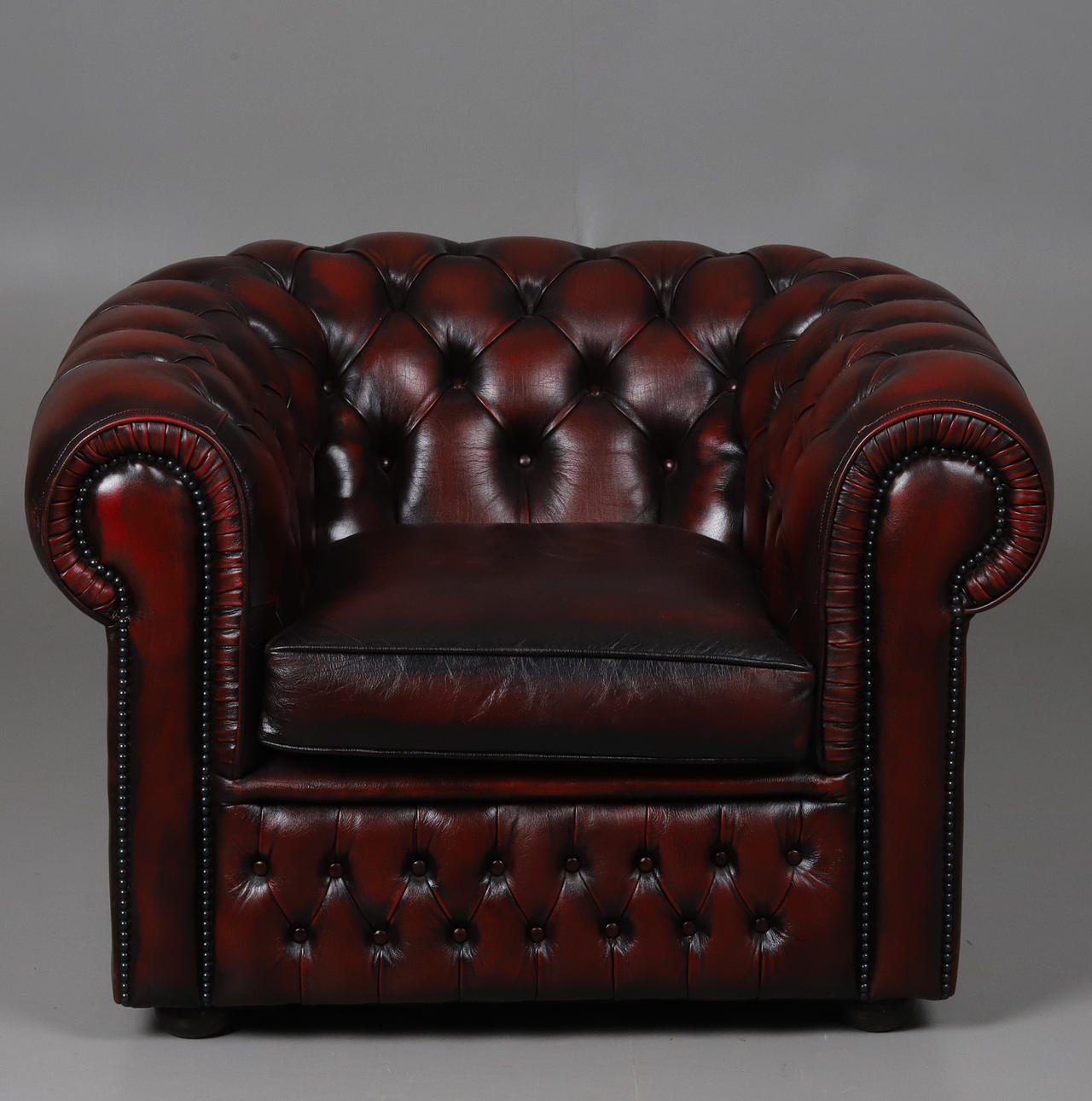 4129530. CHESTERFIELD LÆNESTOL, OXBLOOD LÆDER.