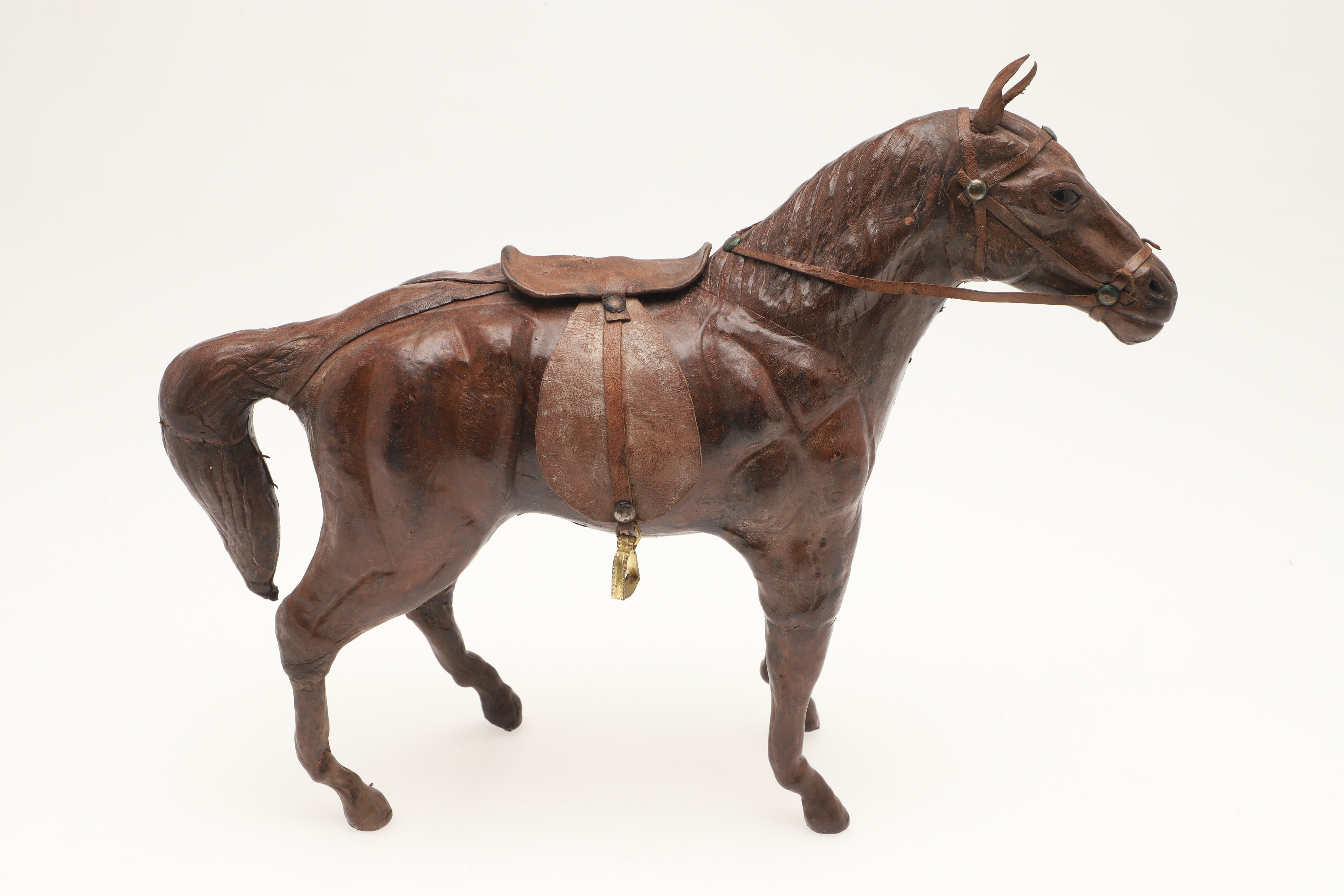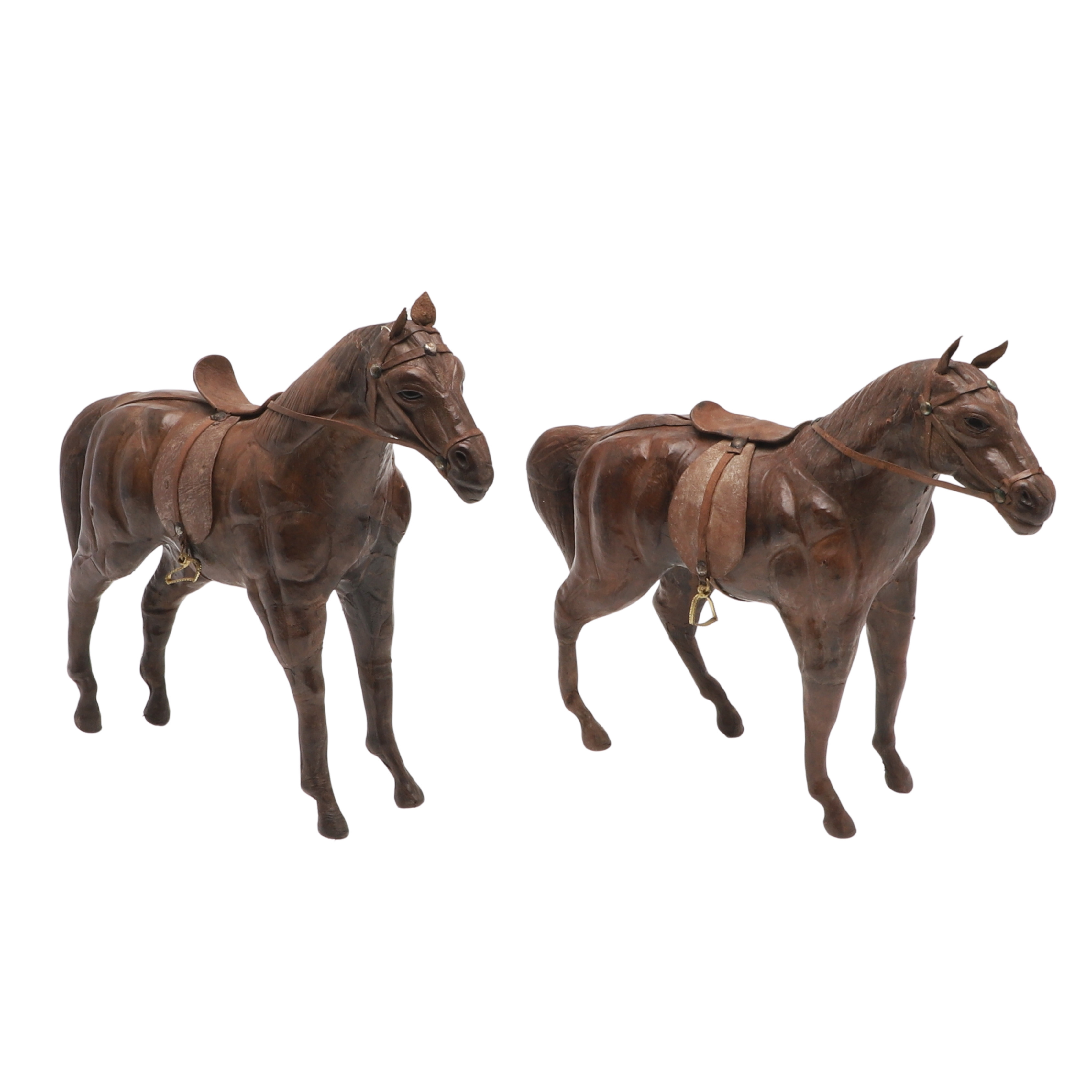 4129851. TO LÆDERMODELLER AF HESTE.