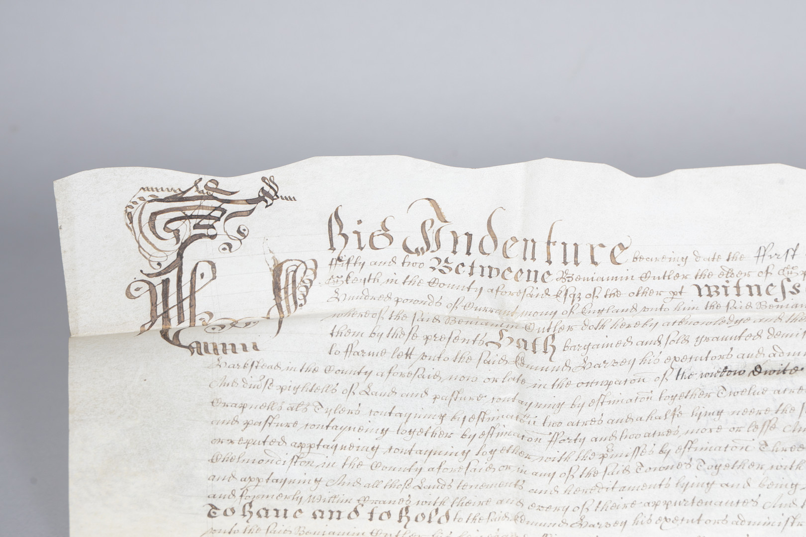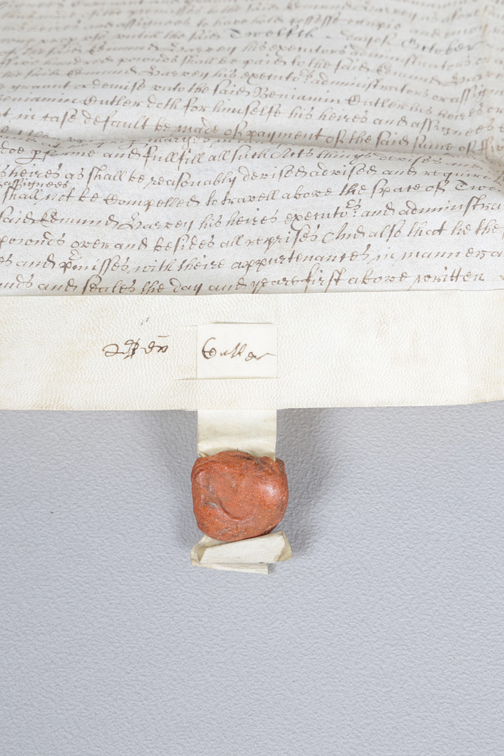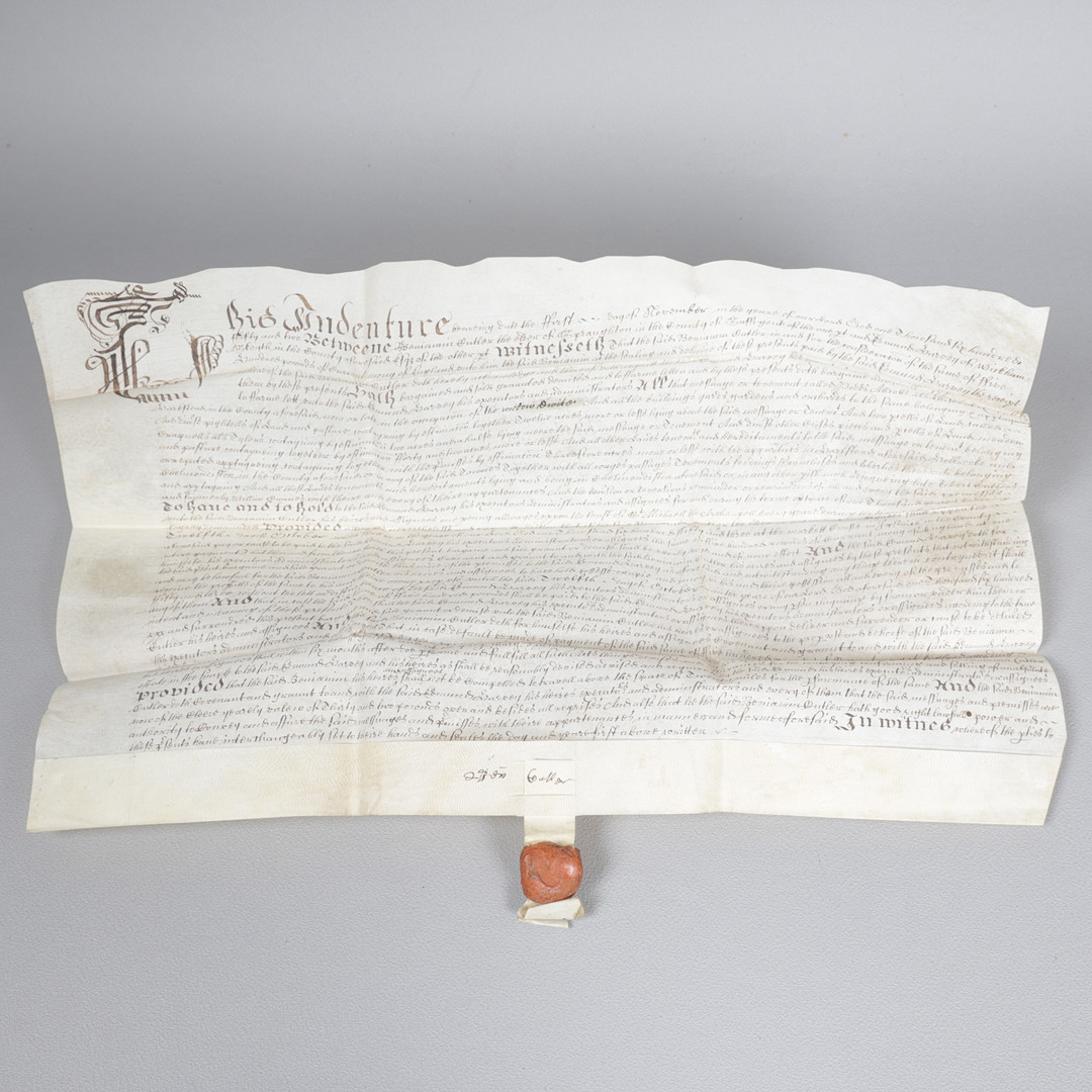 4130055. EN CROMWELLSK DATERET 1652 MANUSKRIPTINDENTURE, LEONARD BASBEY, SUFFOLK.