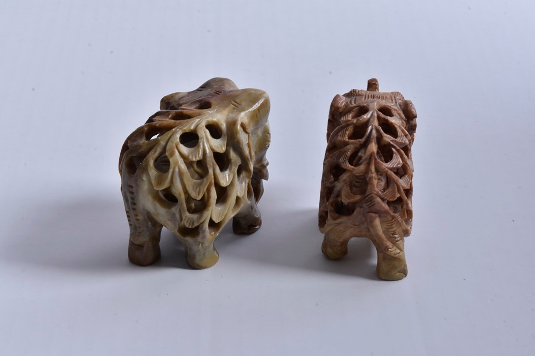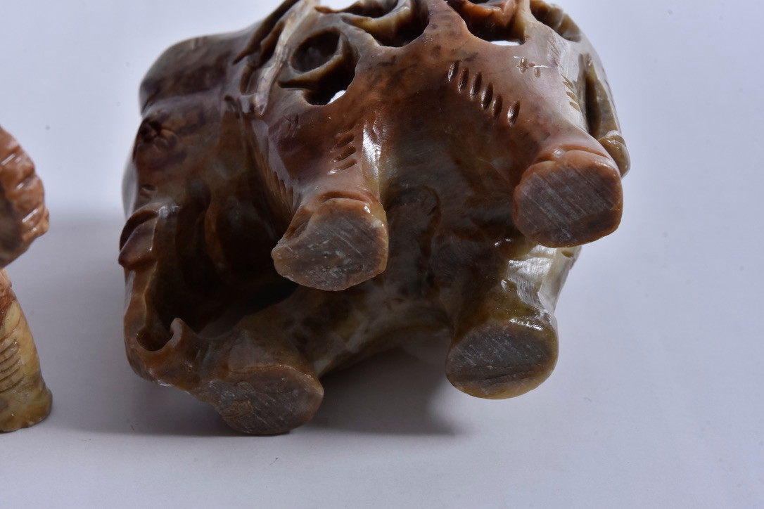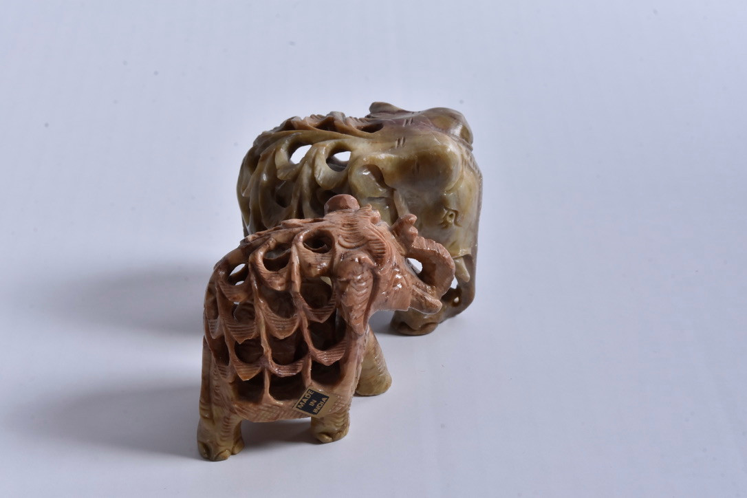 4130242. To fedtstenselefanter, 20. århundrede.