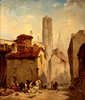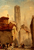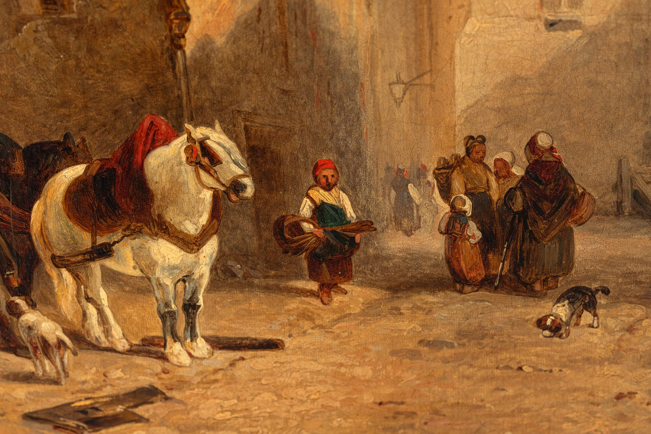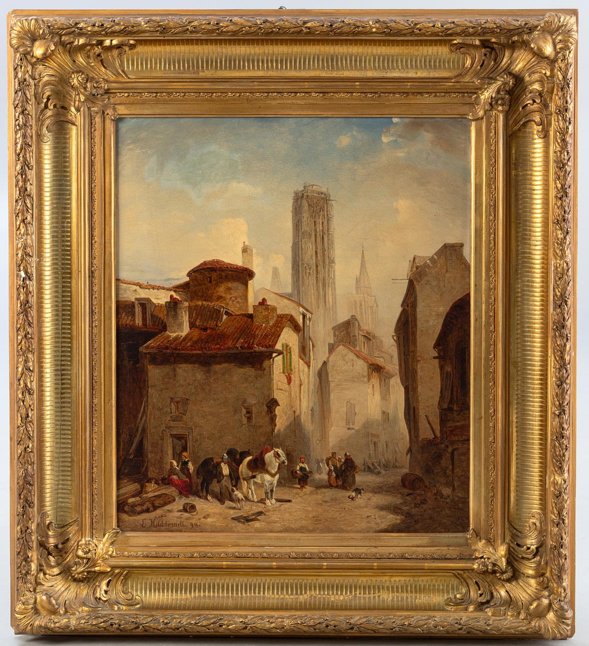Eduard Hildebrandt (1817-1868), gade i Rouen, olie på lærred, 1842, signeret og dateret, ca. 63,5 x 53,5 cm, med stukkarm ca. 91 x 82 cm