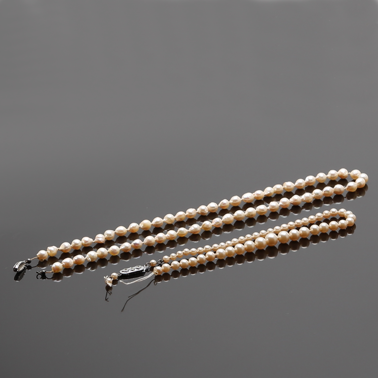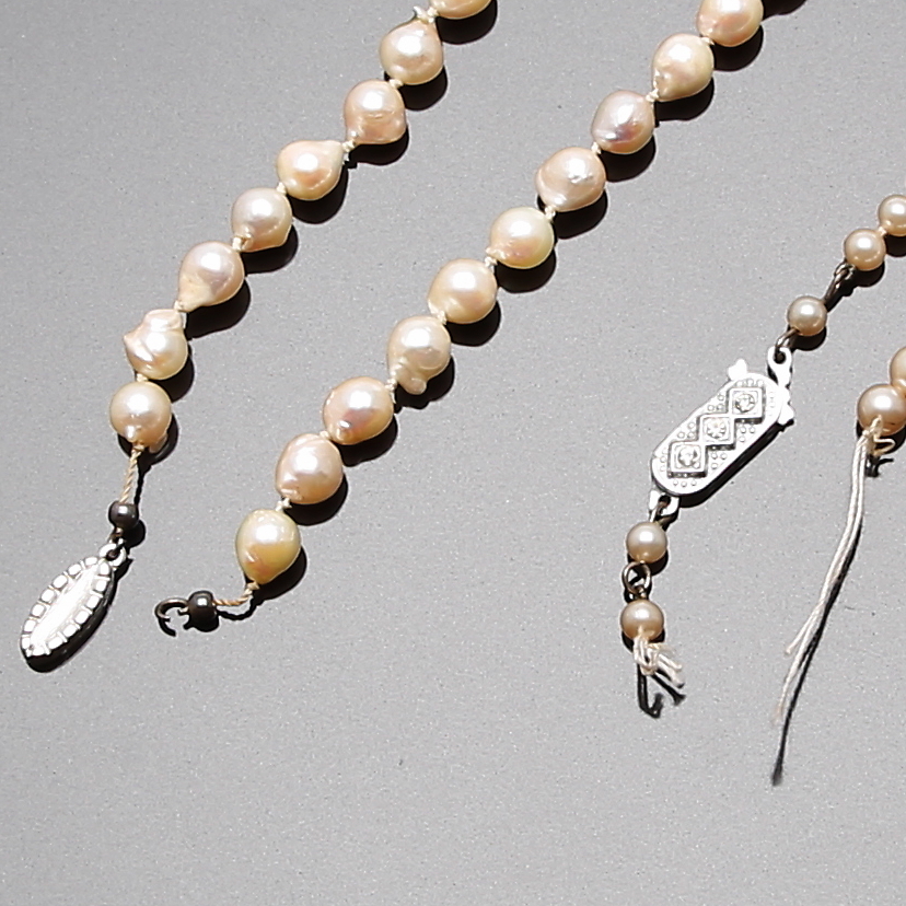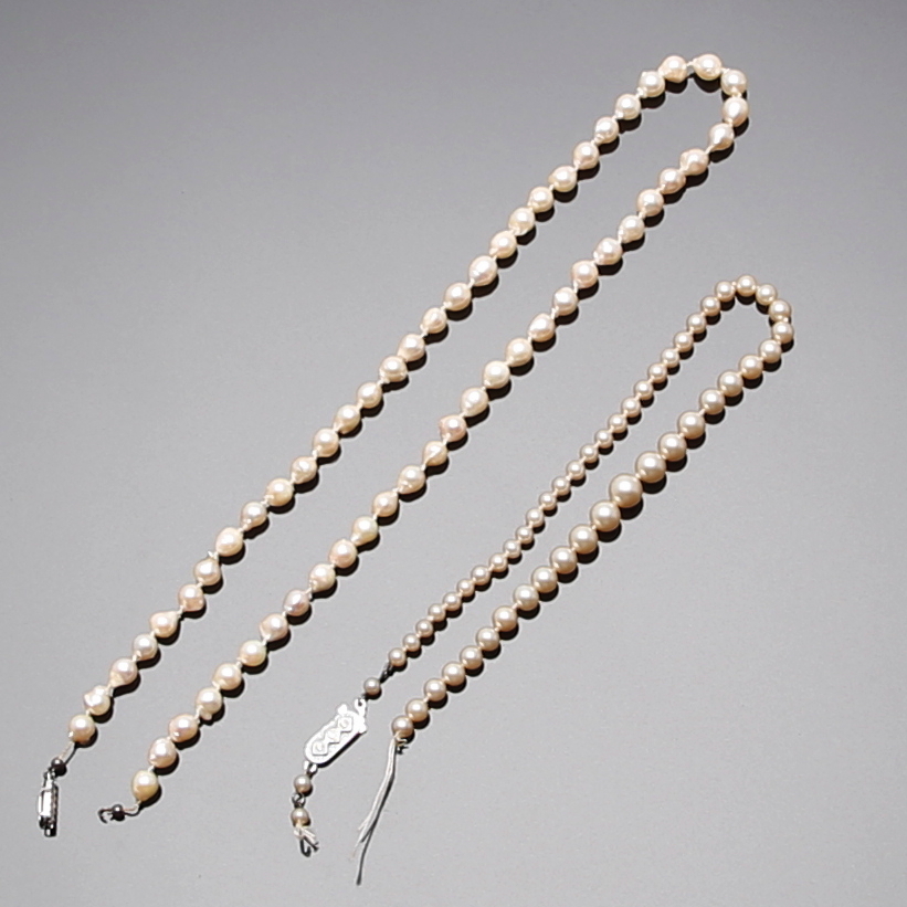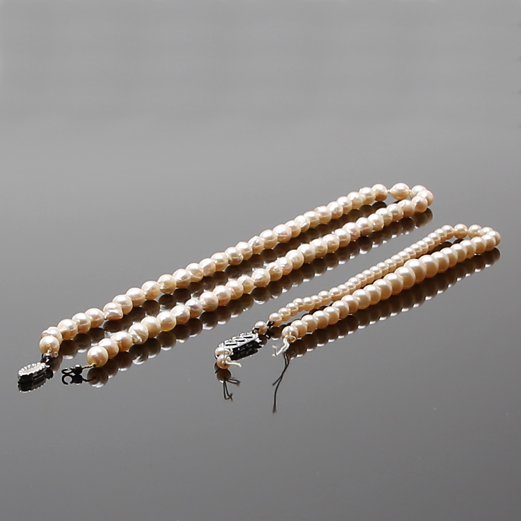 413521. PERLEKALDE 2 stk, kulturperler med sølvlås.