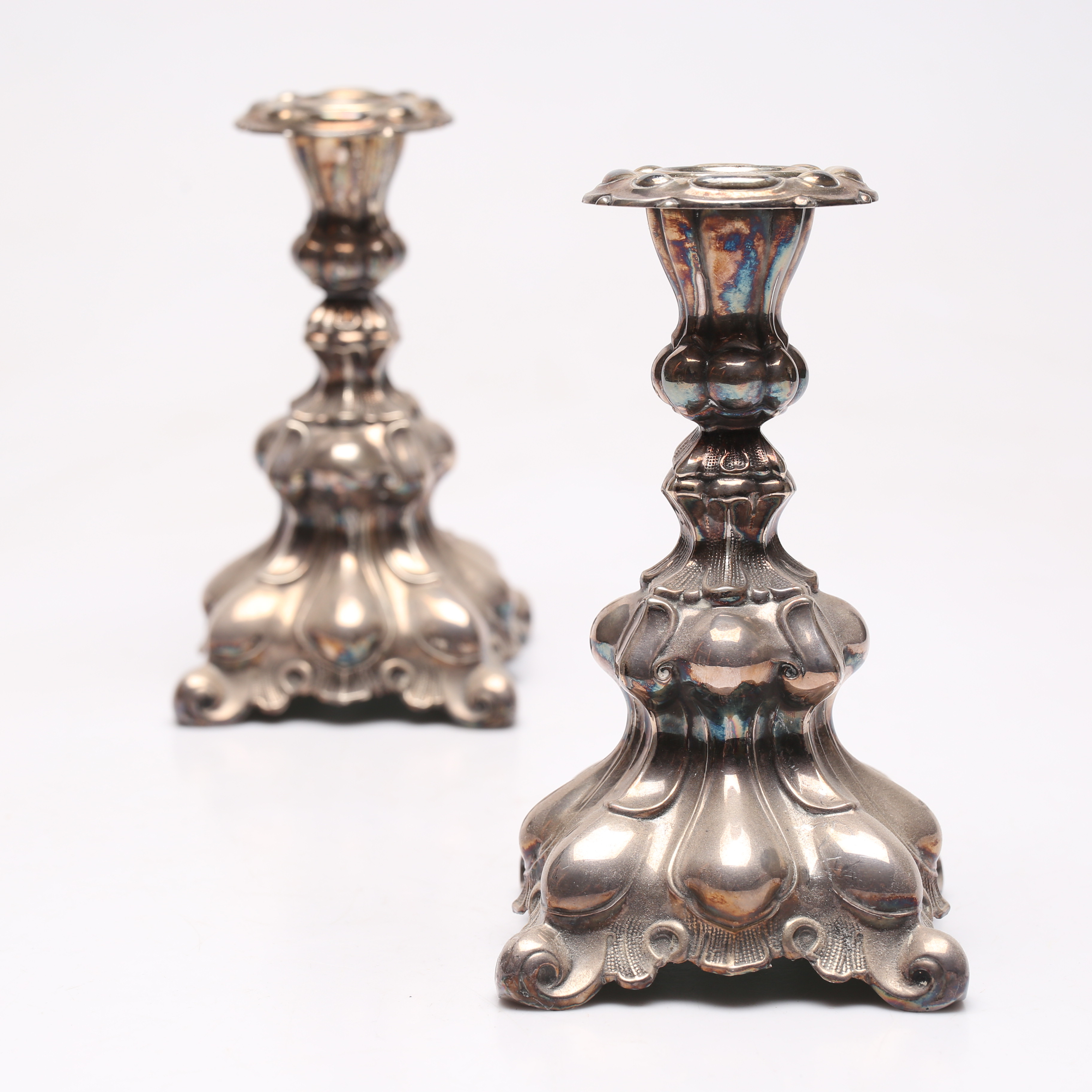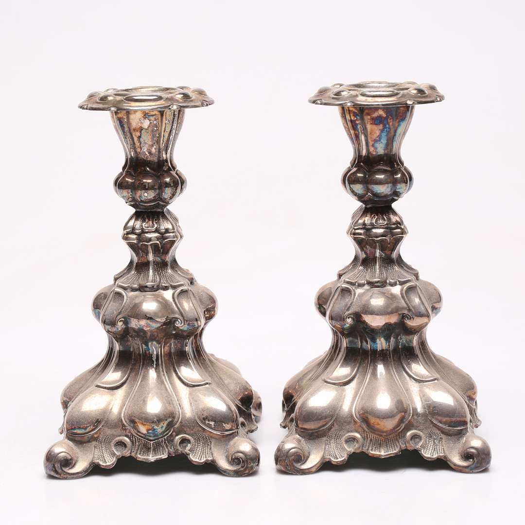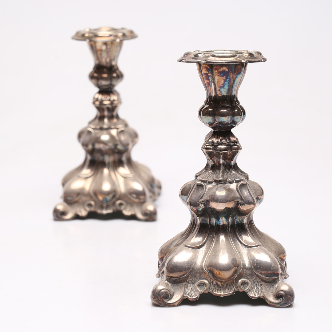4136144. LYSESTAGER, et par, sølv, barok, 20. årh.