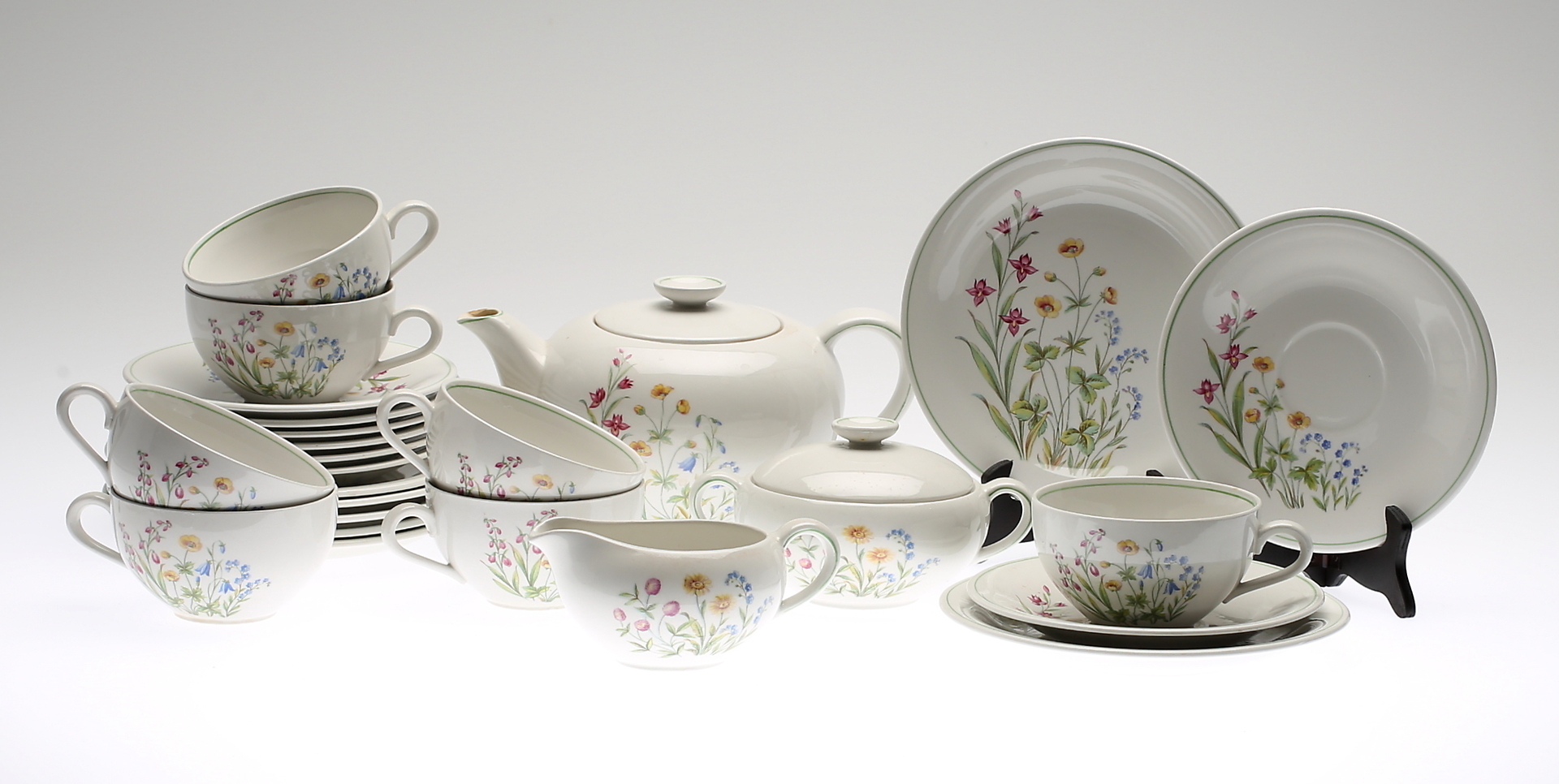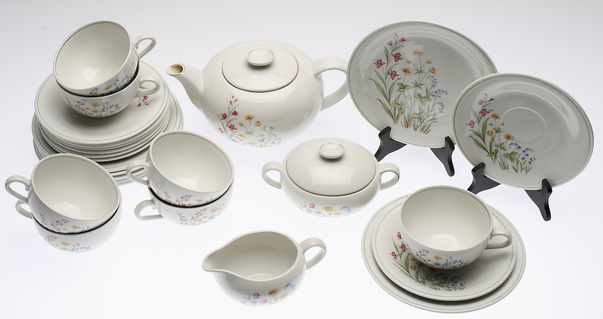 413624. TESERVES, 17 dele, porcelæn, "Forår", Rörstrand.