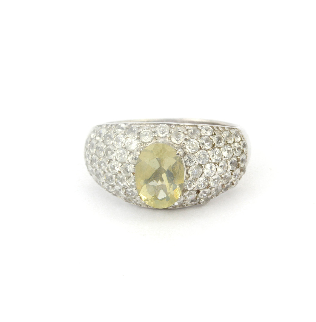 4140452. SØLV, BLEG CITRIN & HVID SAFIR SÆTRING.