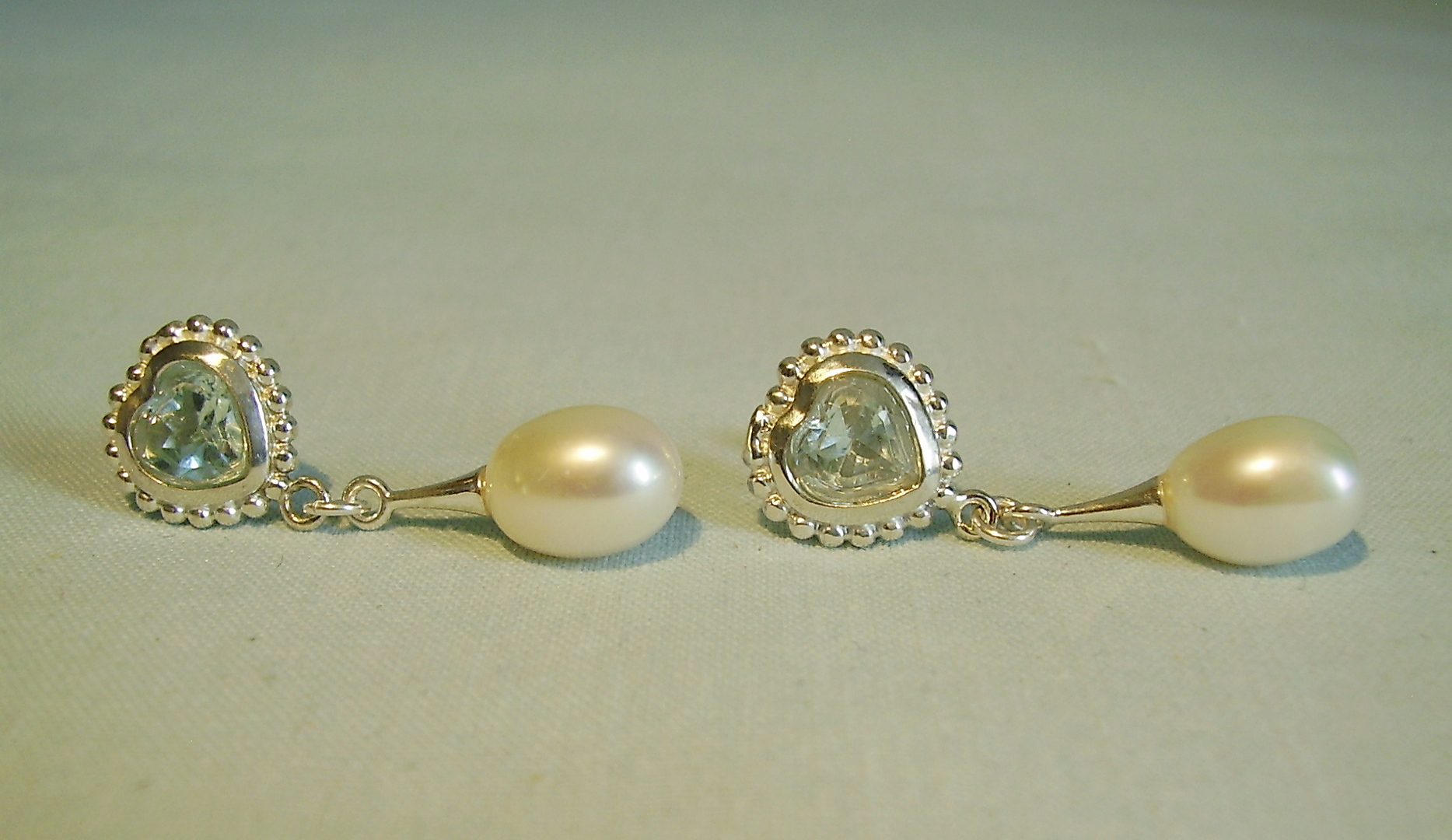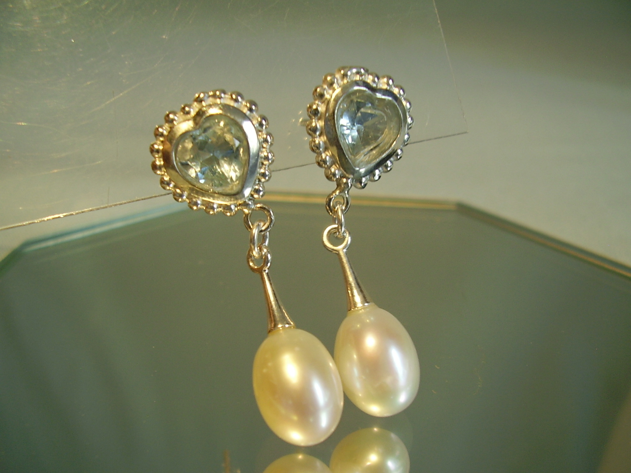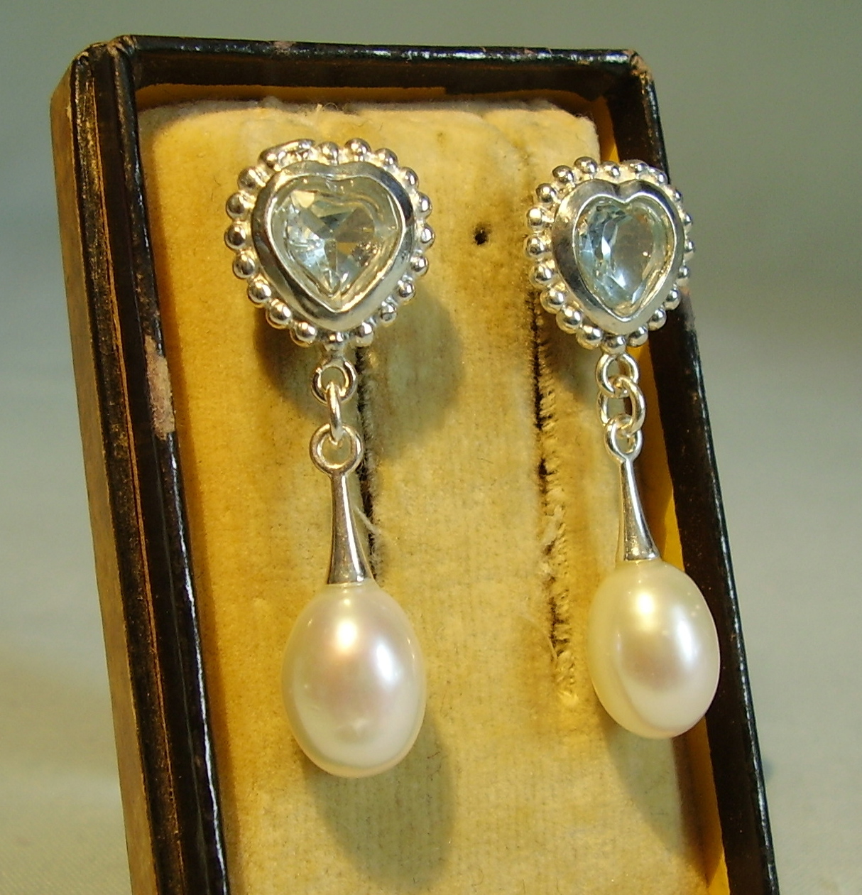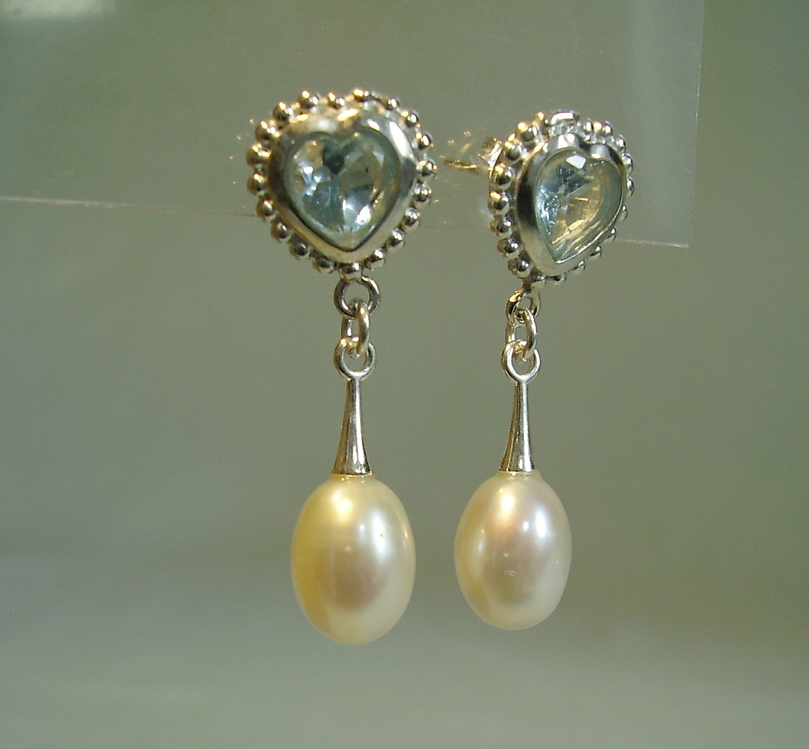 414091. BLÅ TOPAZ HJERTE ØRESNÆRE Sølv 925.