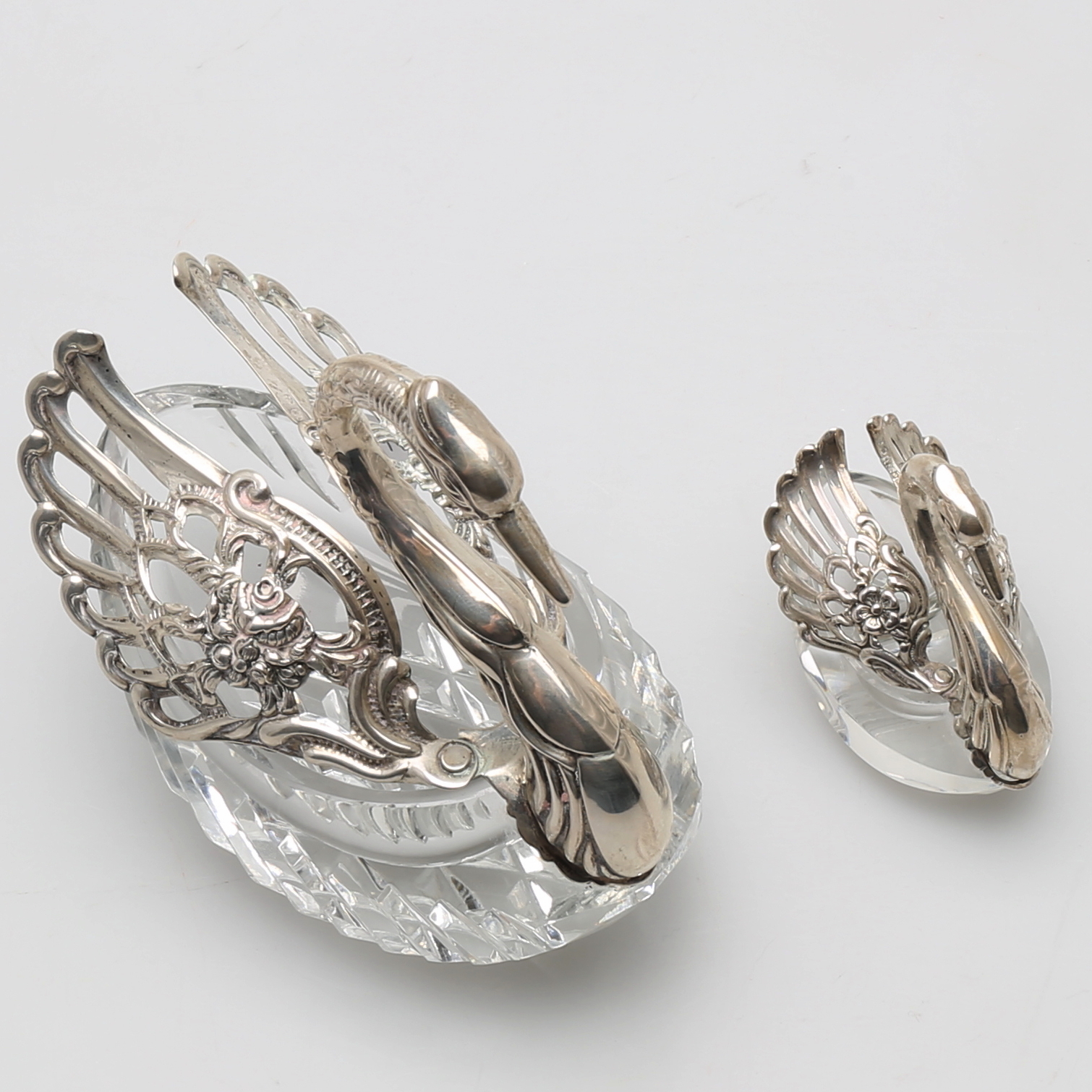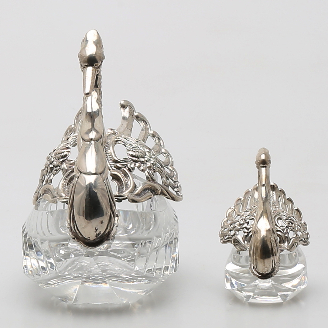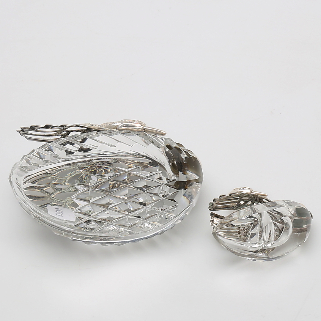 414164. SUKKERSKÅLE og SALTFADE, sølv og krystal.