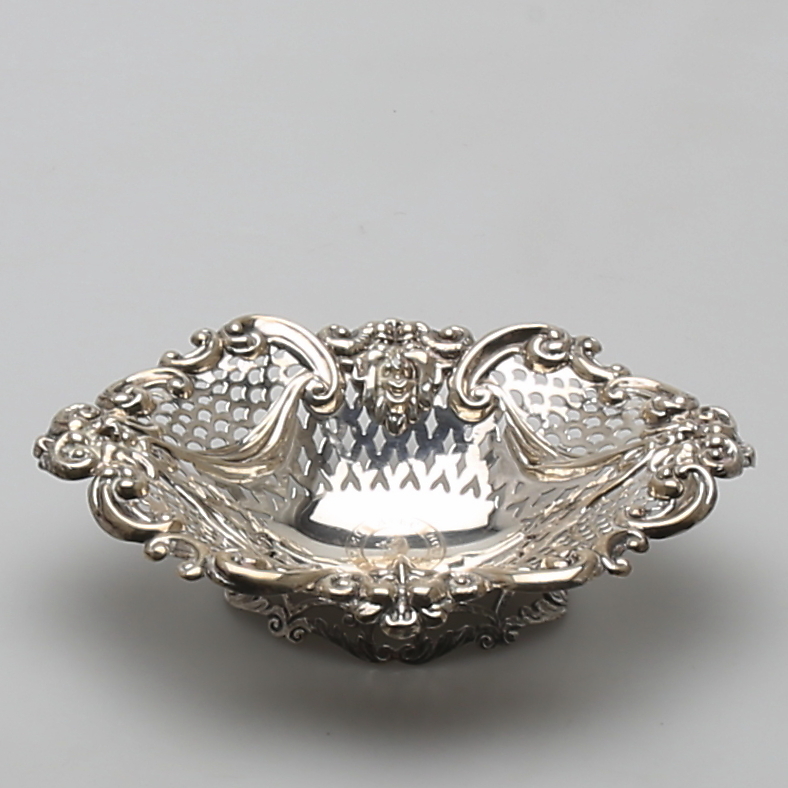 414293. SKÅL, sølv, gennembrudt, England, 1900-tallet.