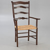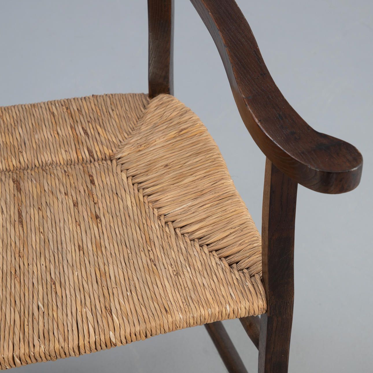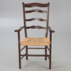 Mørkebrun glaseret eg/kruiswork. Lidt buede rygbøjler