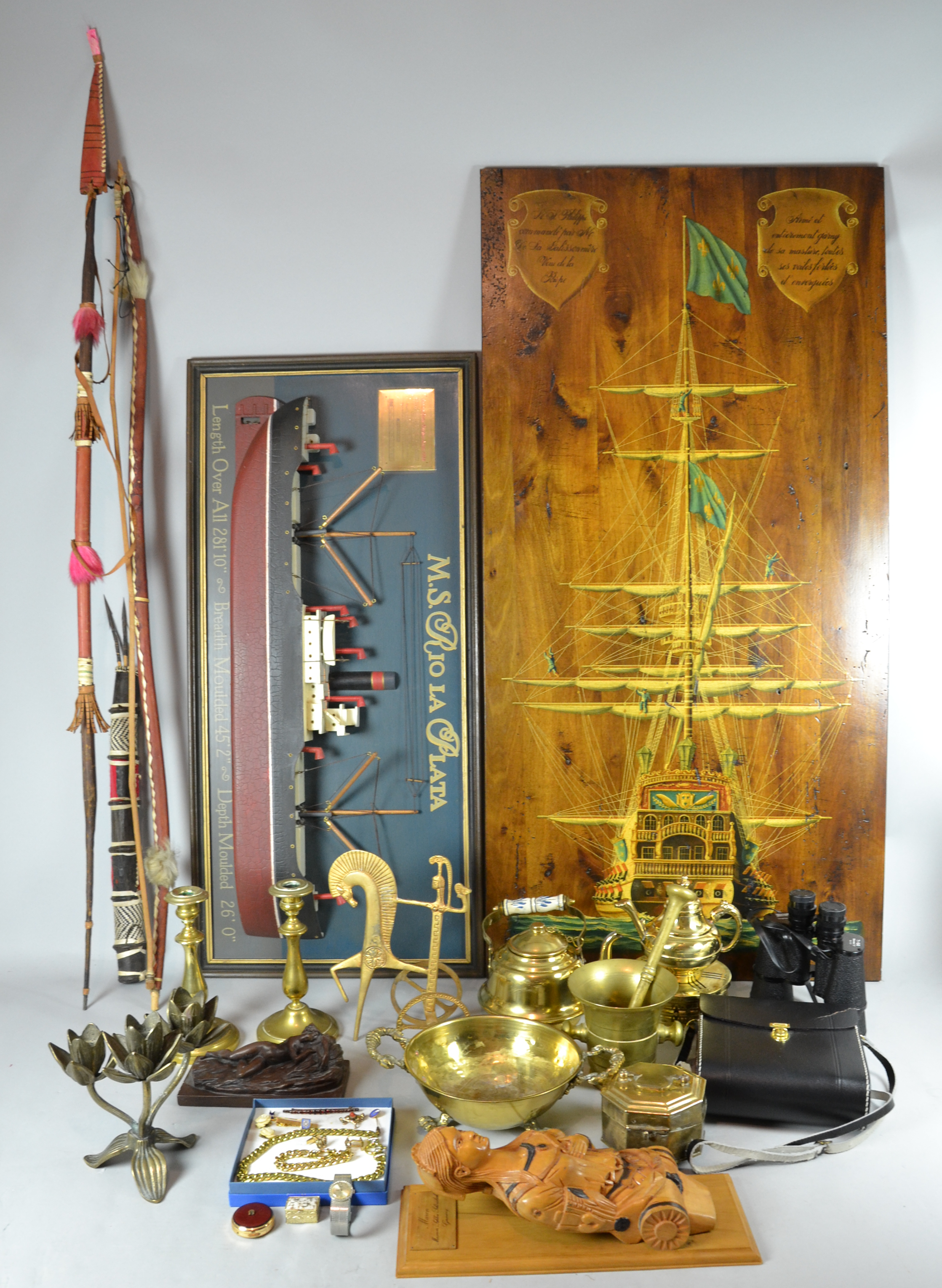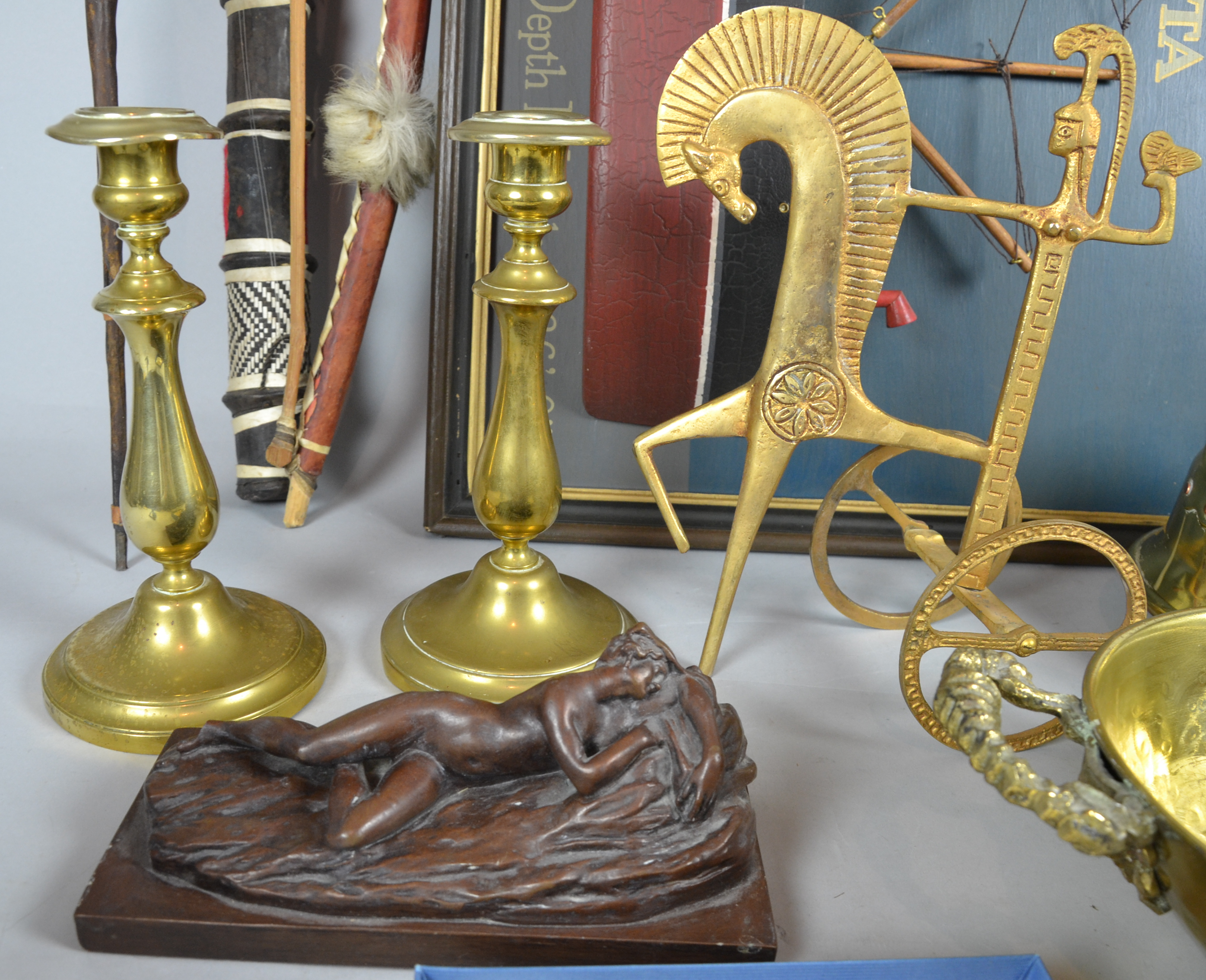 414725. SAMLING AF VARIA MESSING, TRÆ, MODESYKKER.