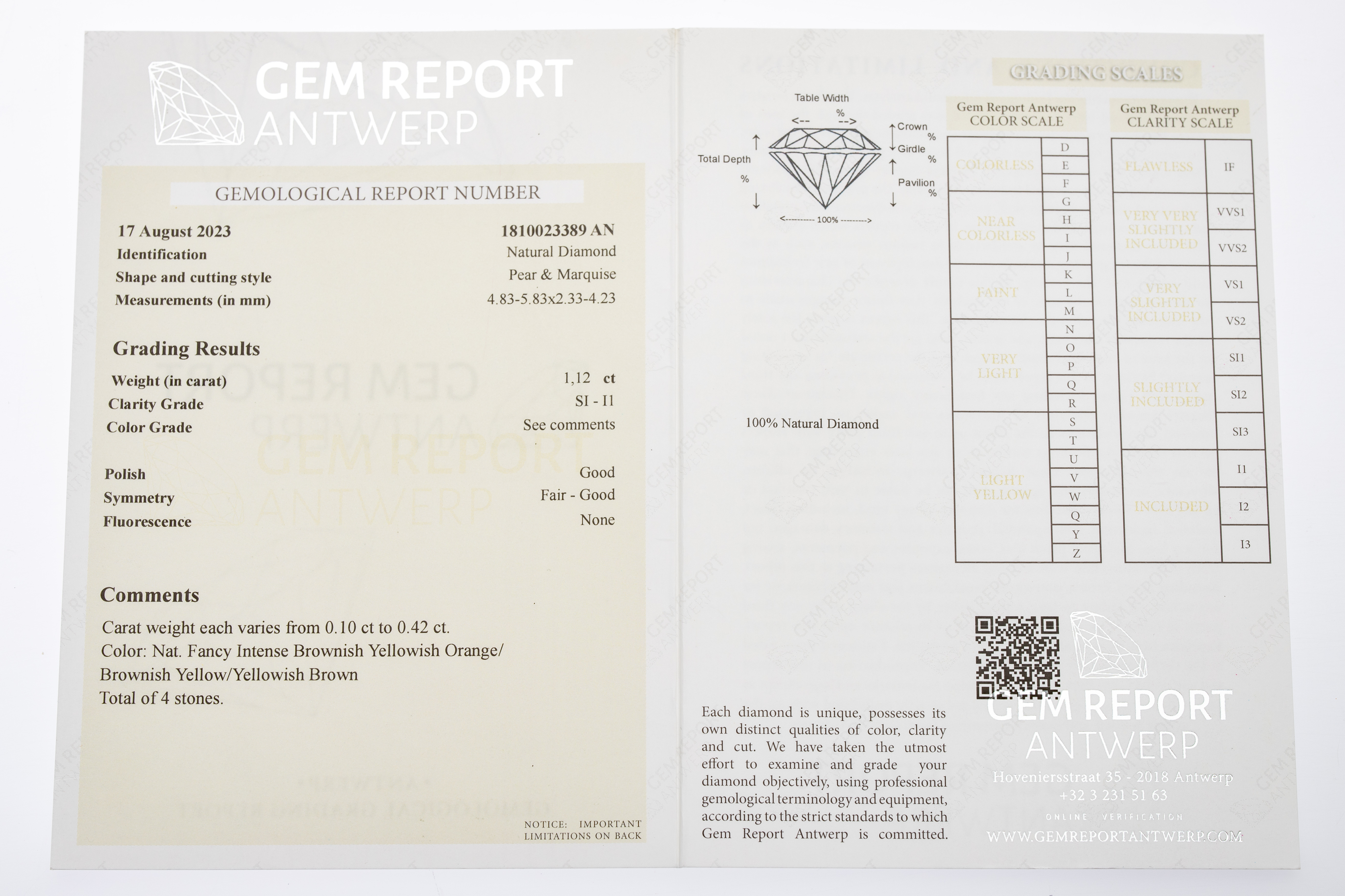 4147500. Løs diamant, ca. 1,12 ct.