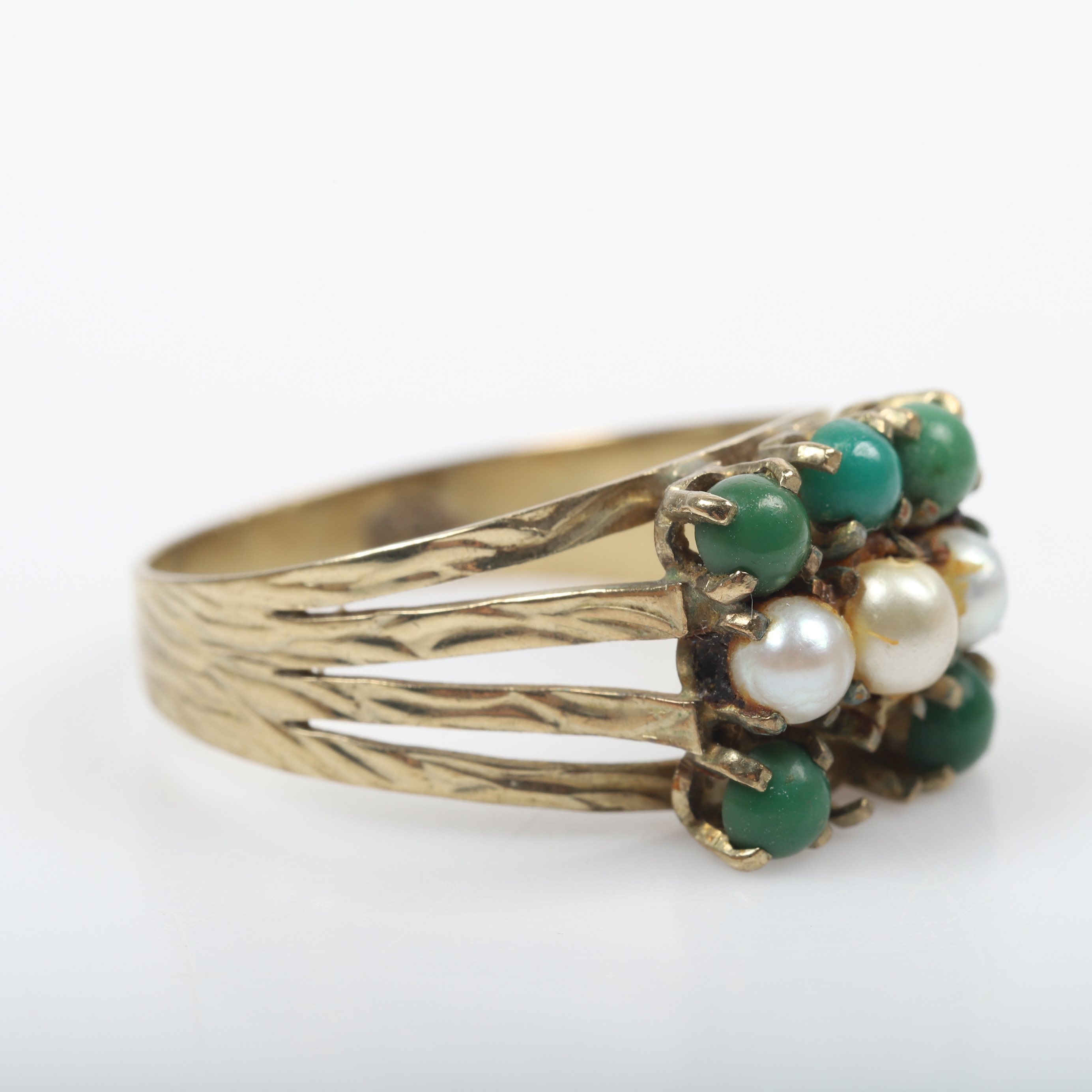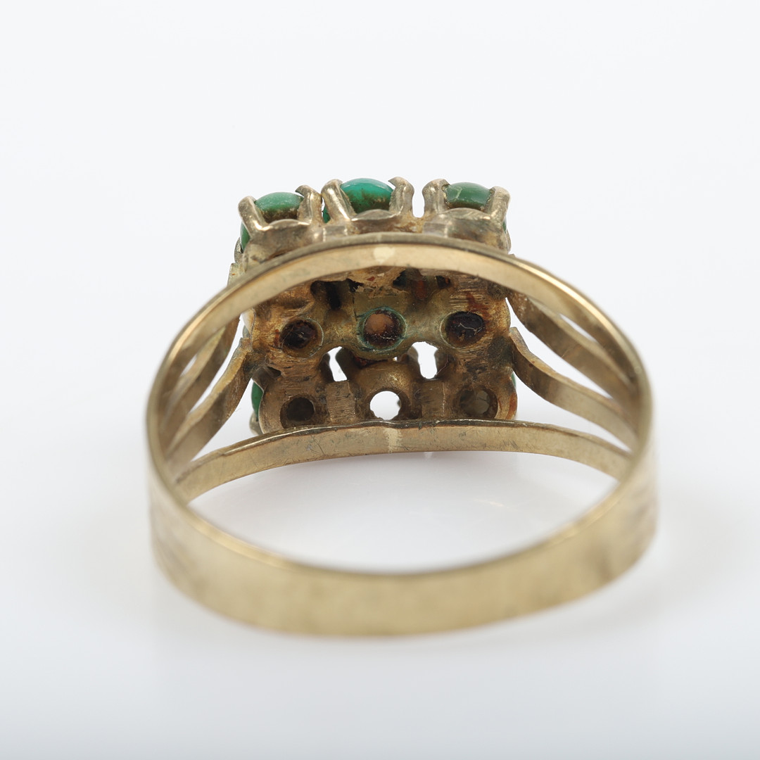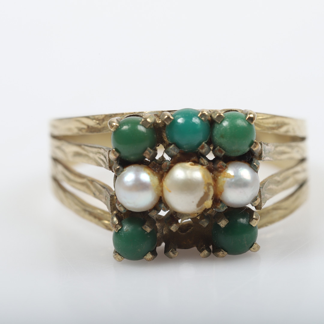 4148374. RING, 8 K guld med dyrkede perler og sten.