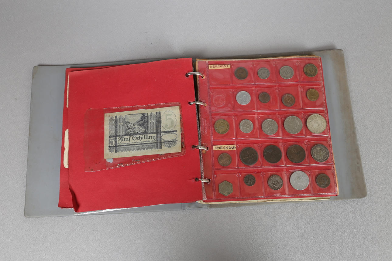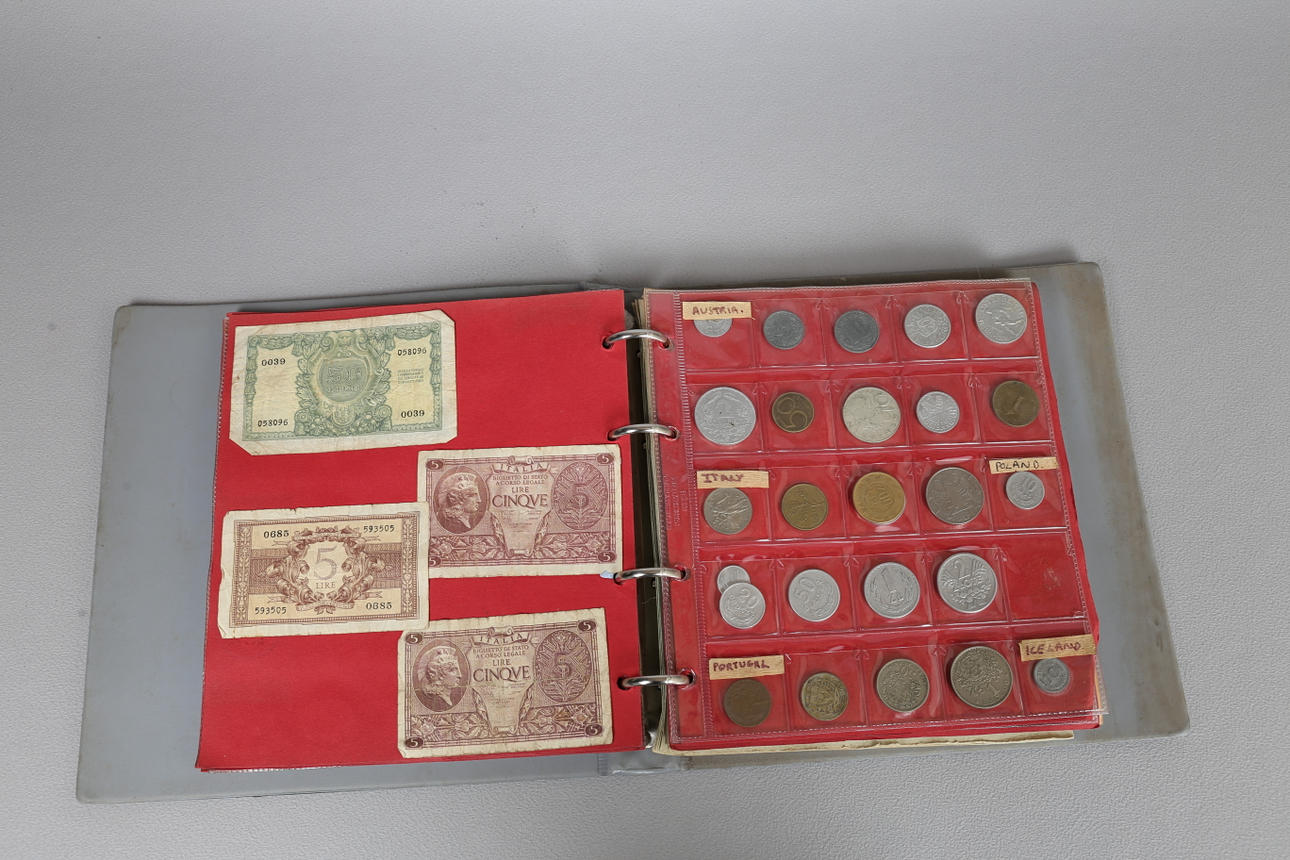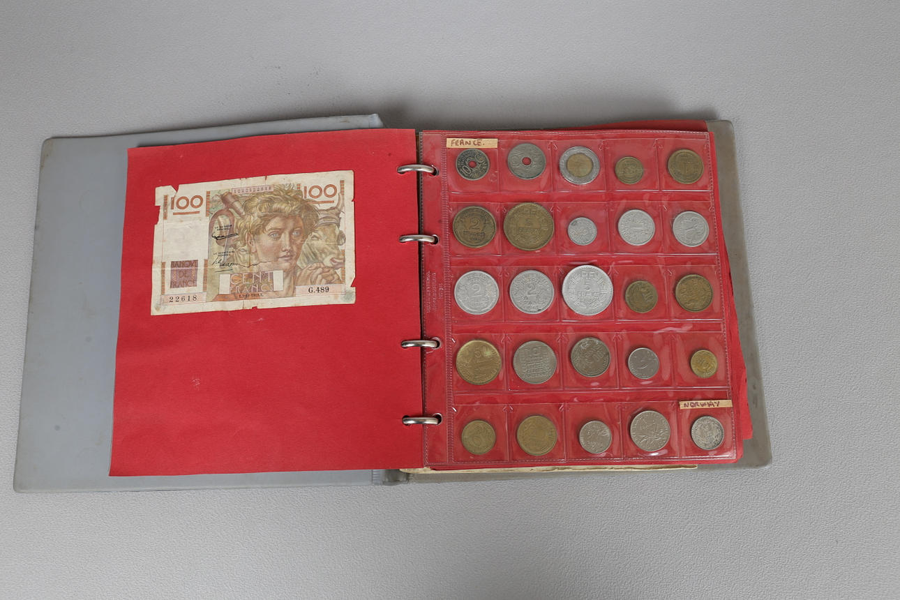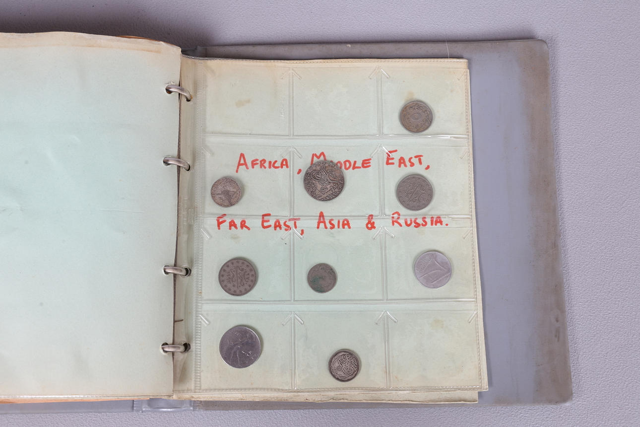 Verdensmønter med et album med Demark, Norge, Sverige, Polen, Island og British Commonwealth.