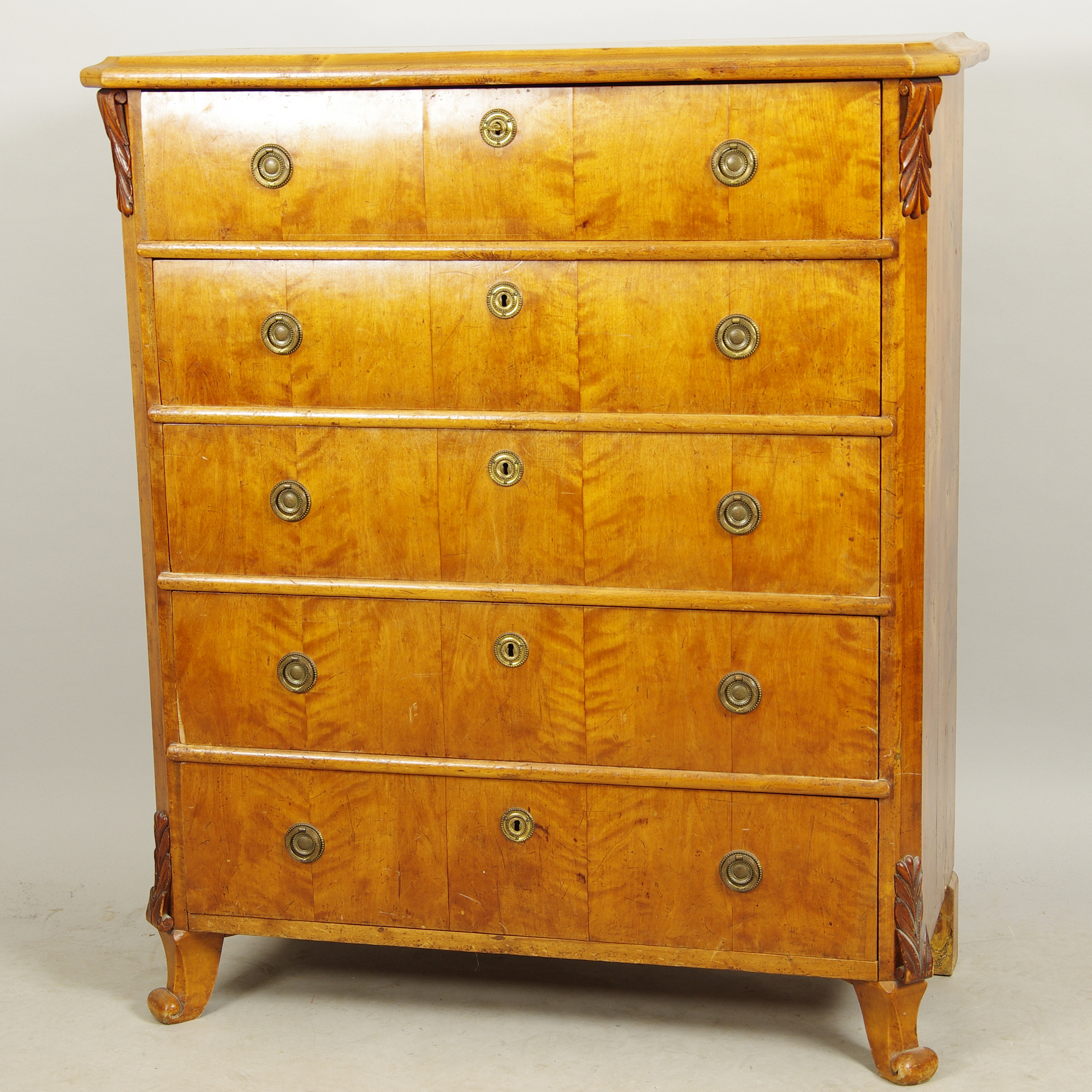 415177. Kommode, 5-skuffer, birk, sen empire.
