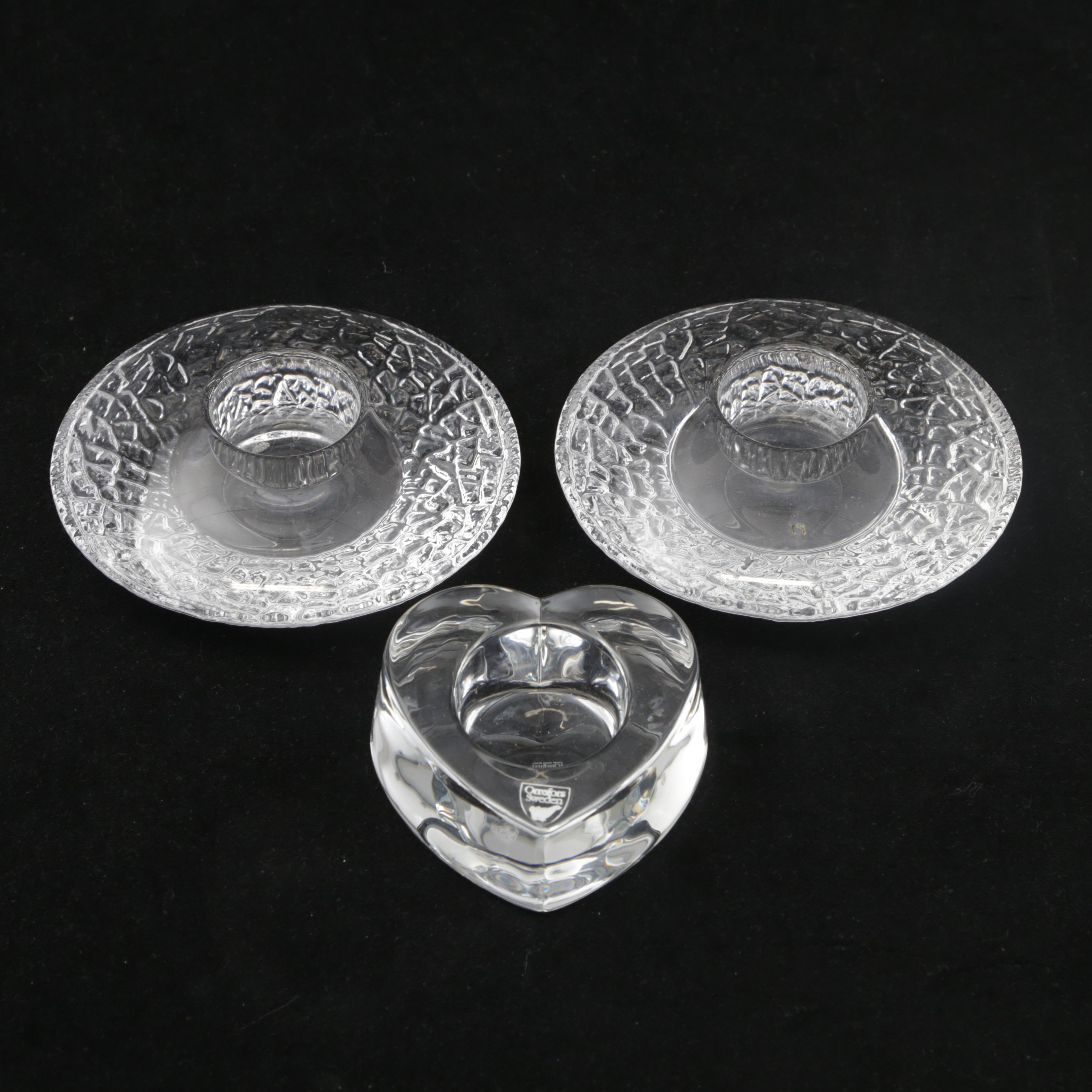 4153018. Stearinlys 3 stk, glas, Orrefors.