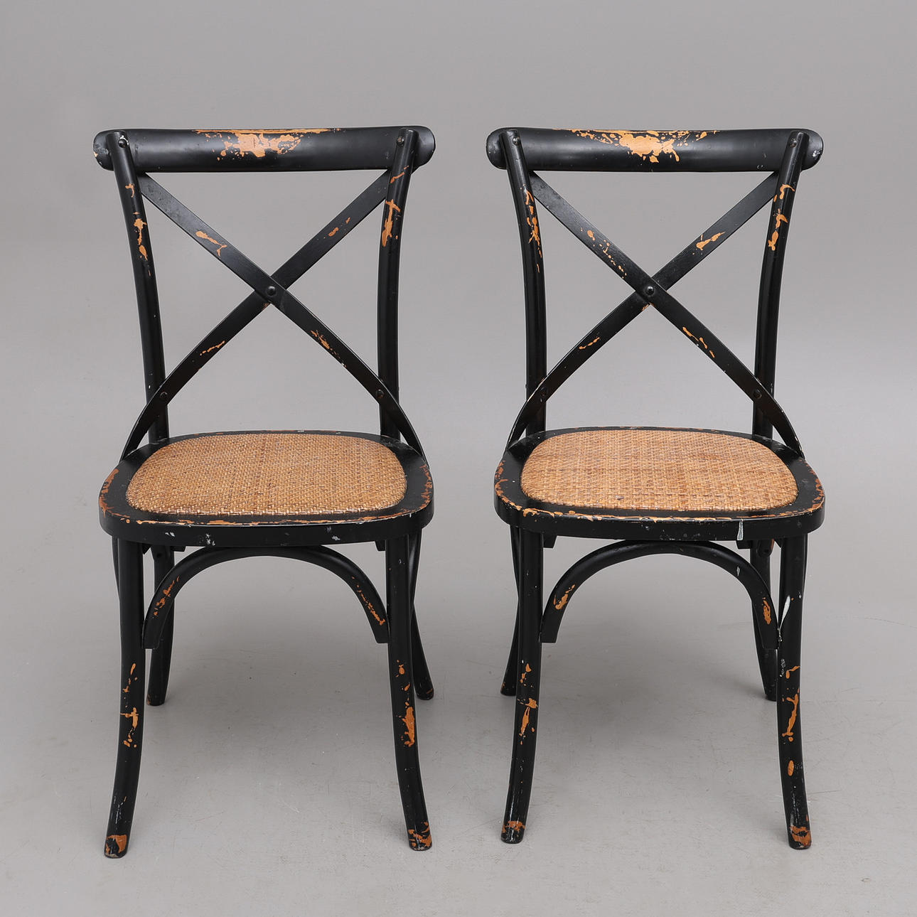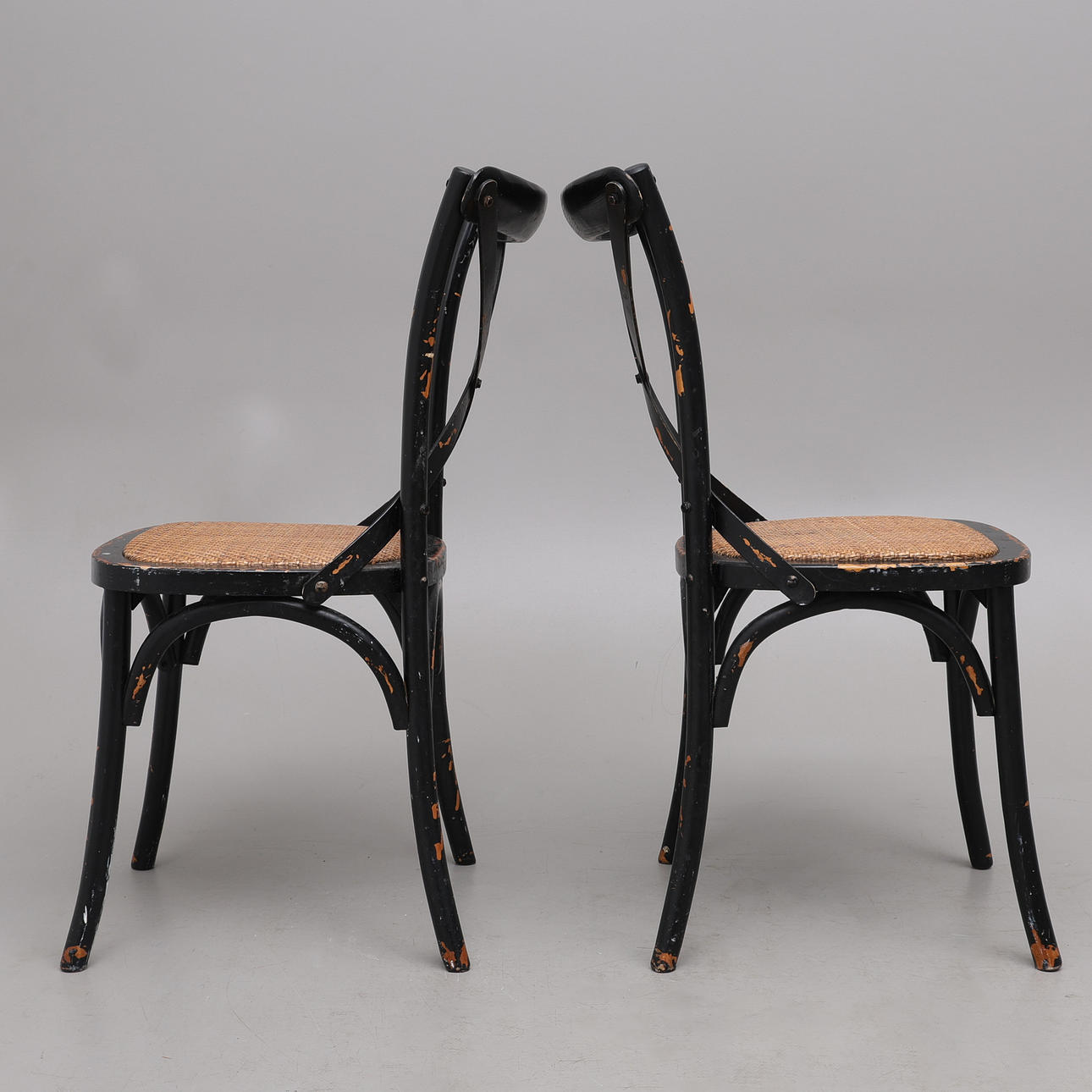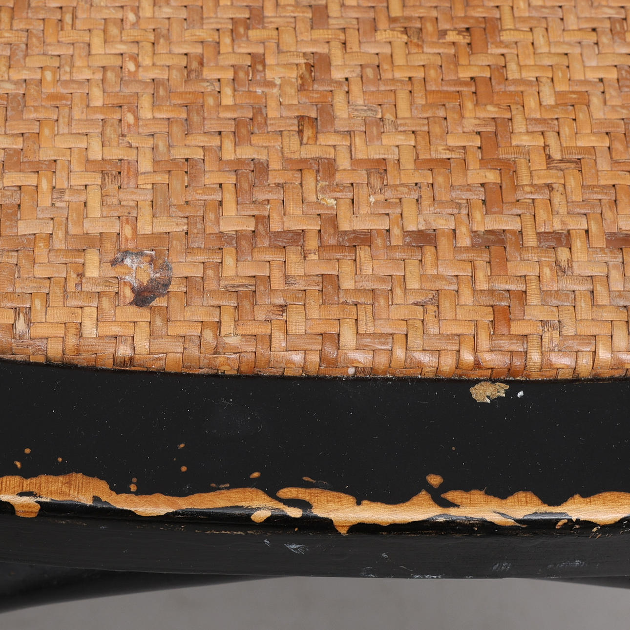 Buet træ med rattan sæder, metaldetaljer, ryghøjde ca. 88 cm.