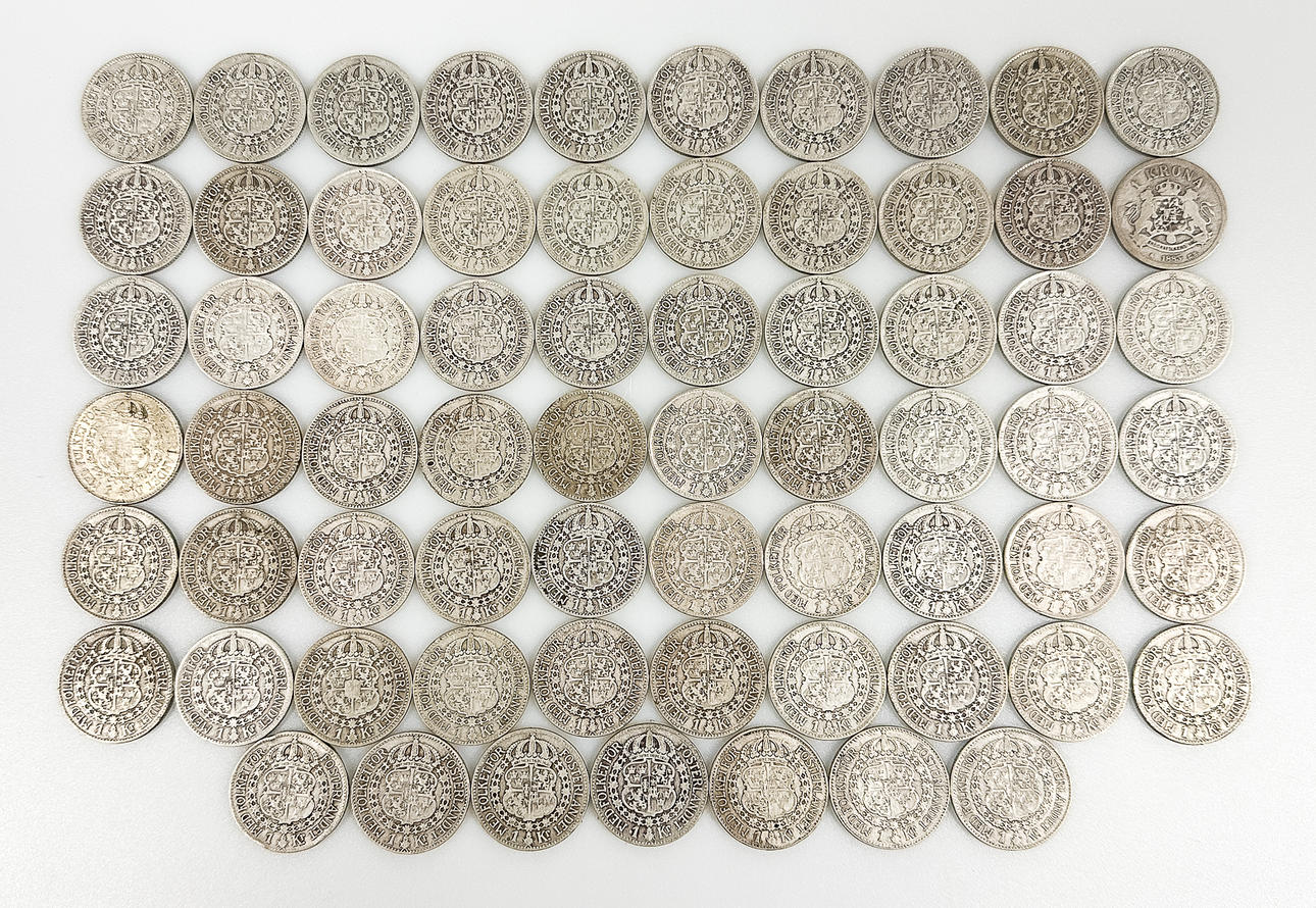 MØNT, parti 1 kroner, 80% sølv, 500 gram.