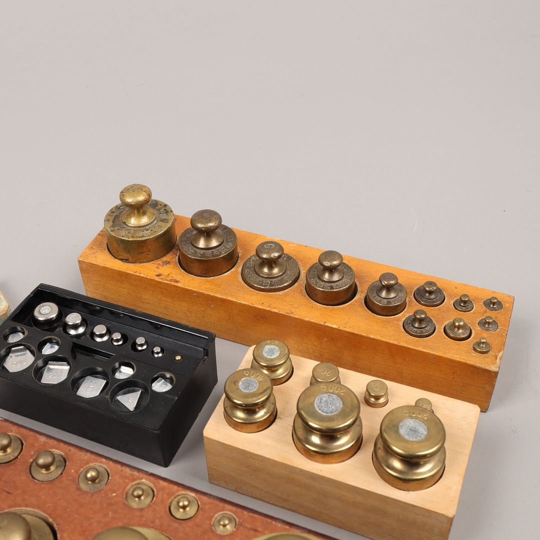 4159304. VÆGTSÆT, 5 stk, metal/træ, 1800/1900-tal.
