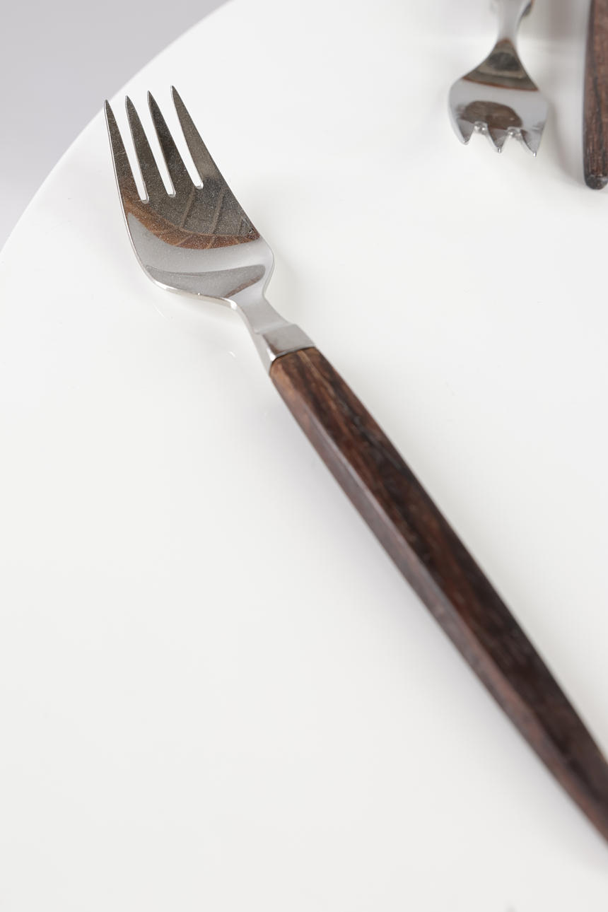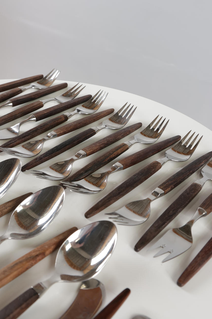 Bestik med skafter af massiv palisander, monteringer af rustfrit stål, bestående af;