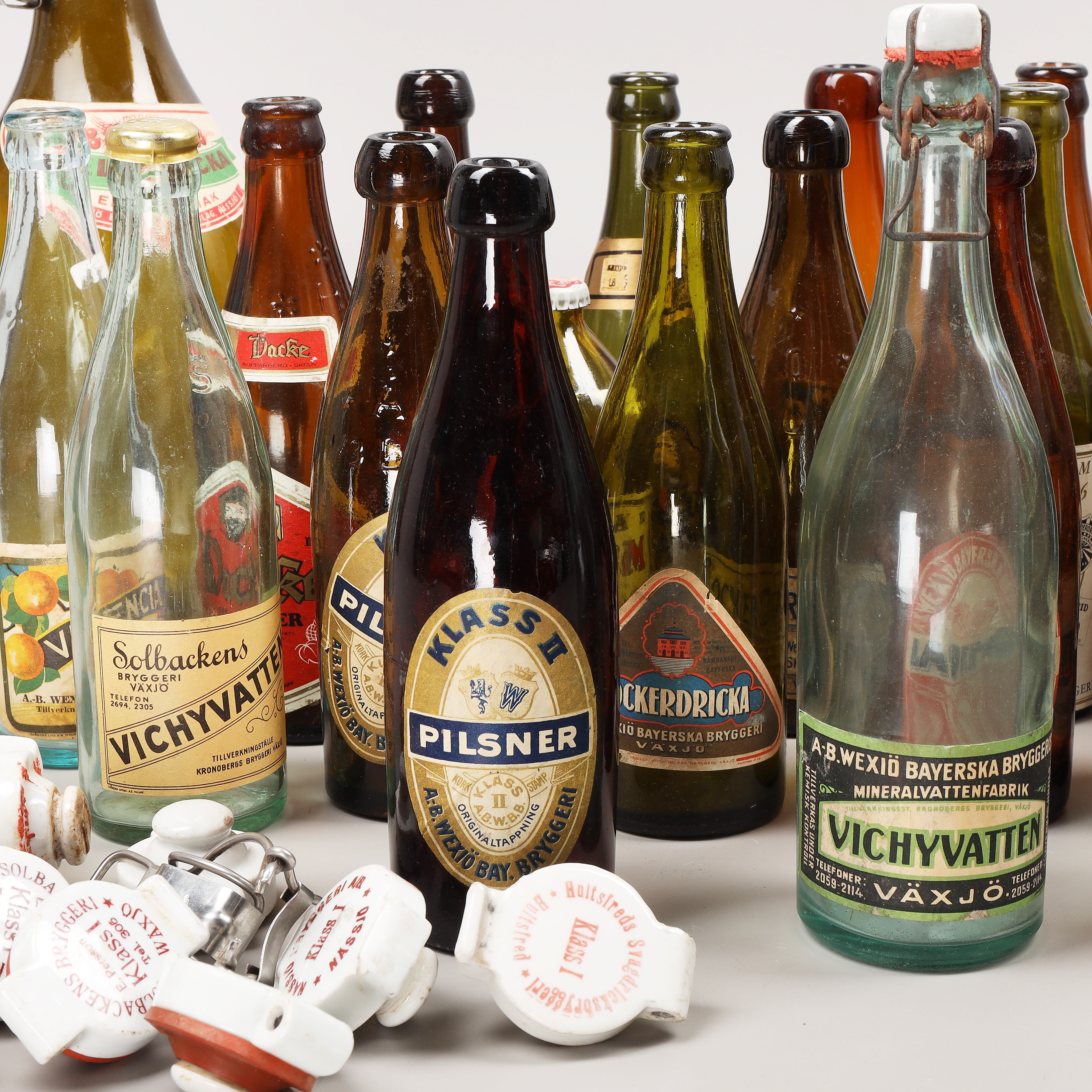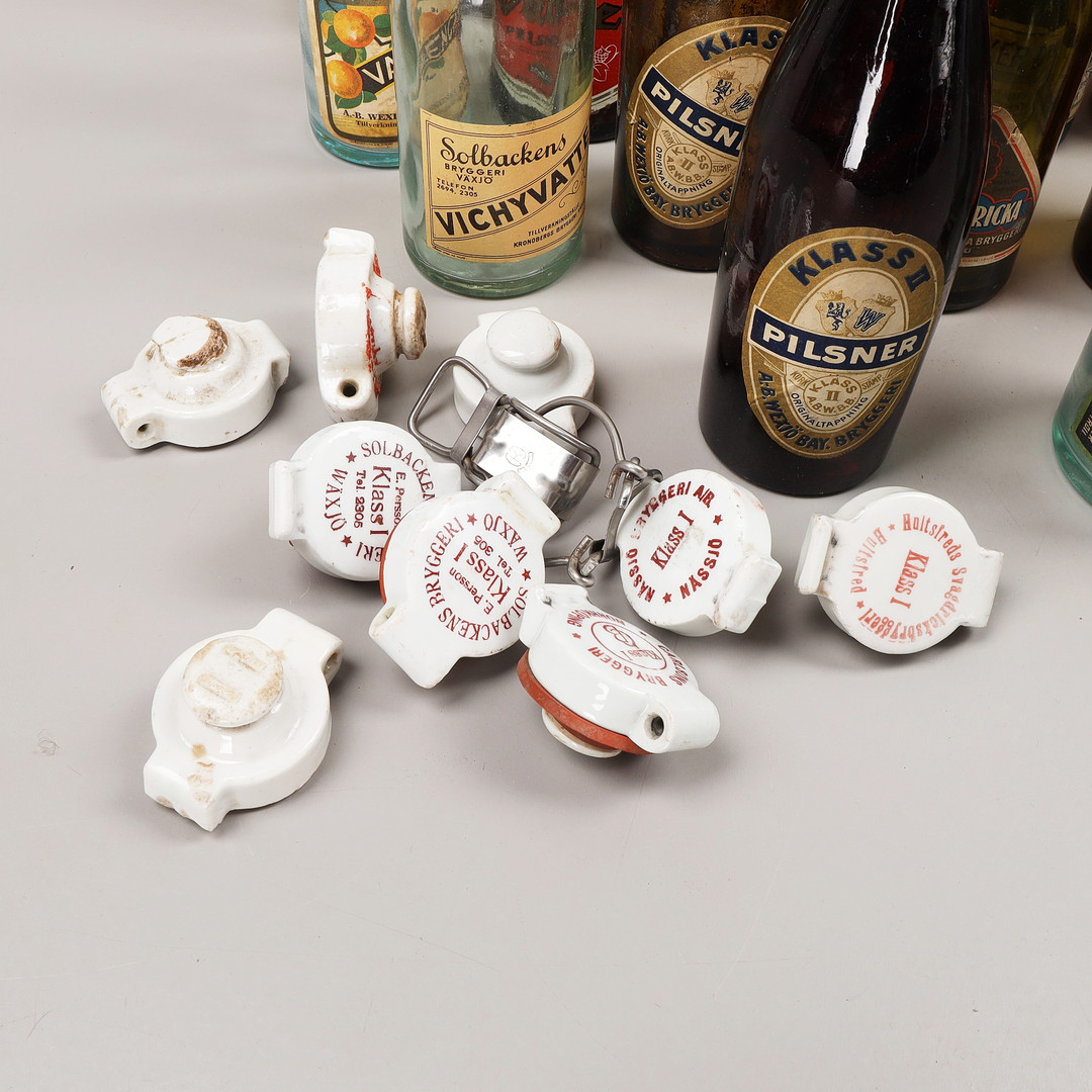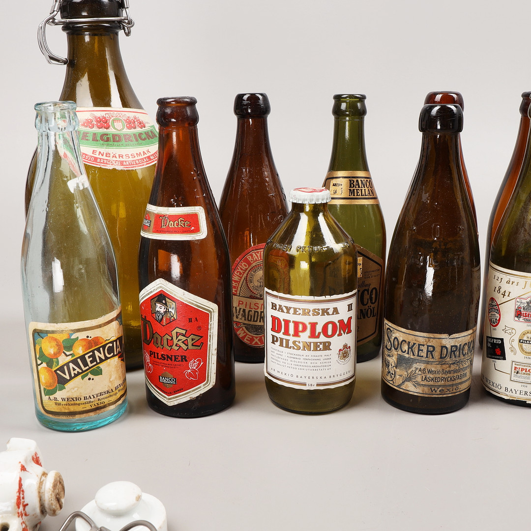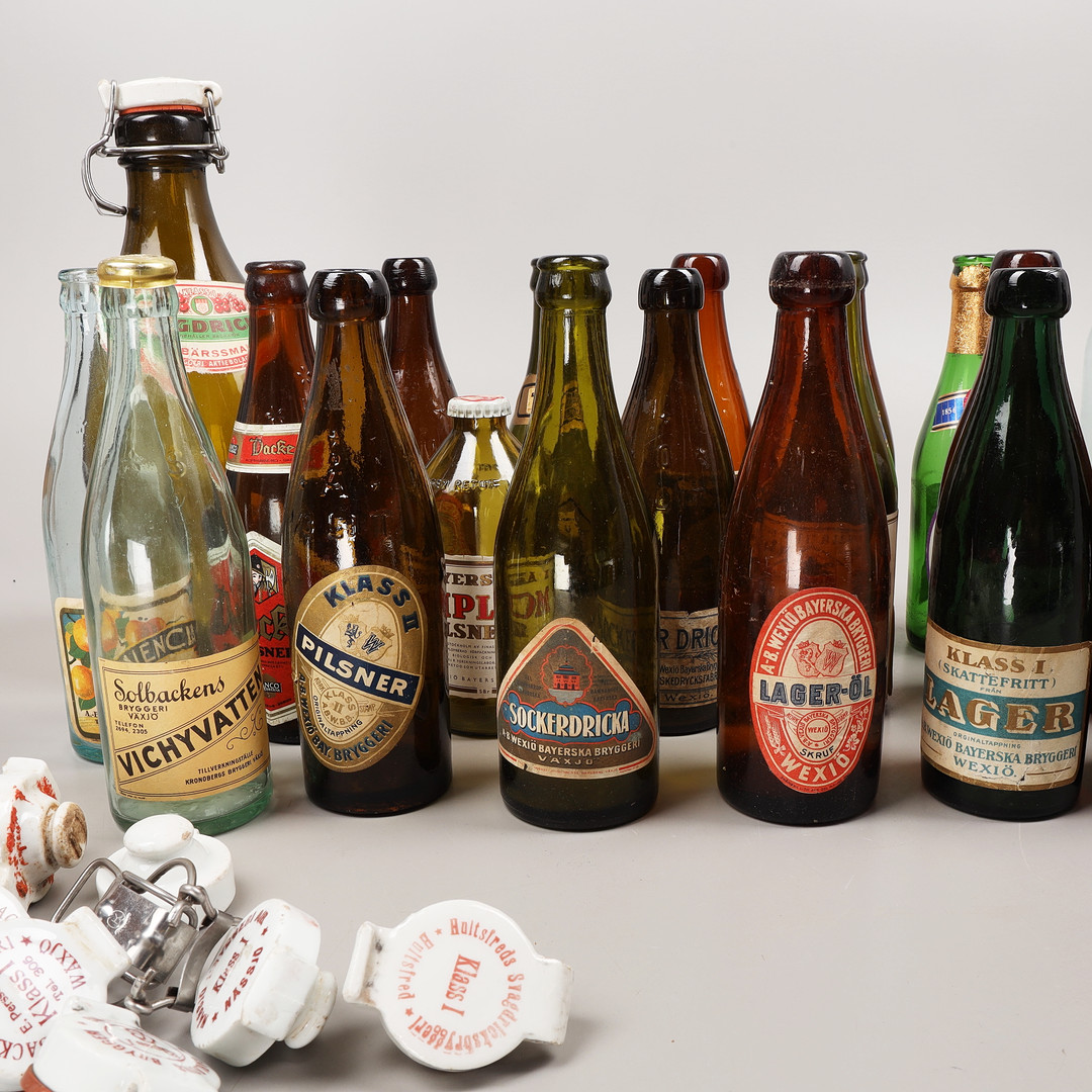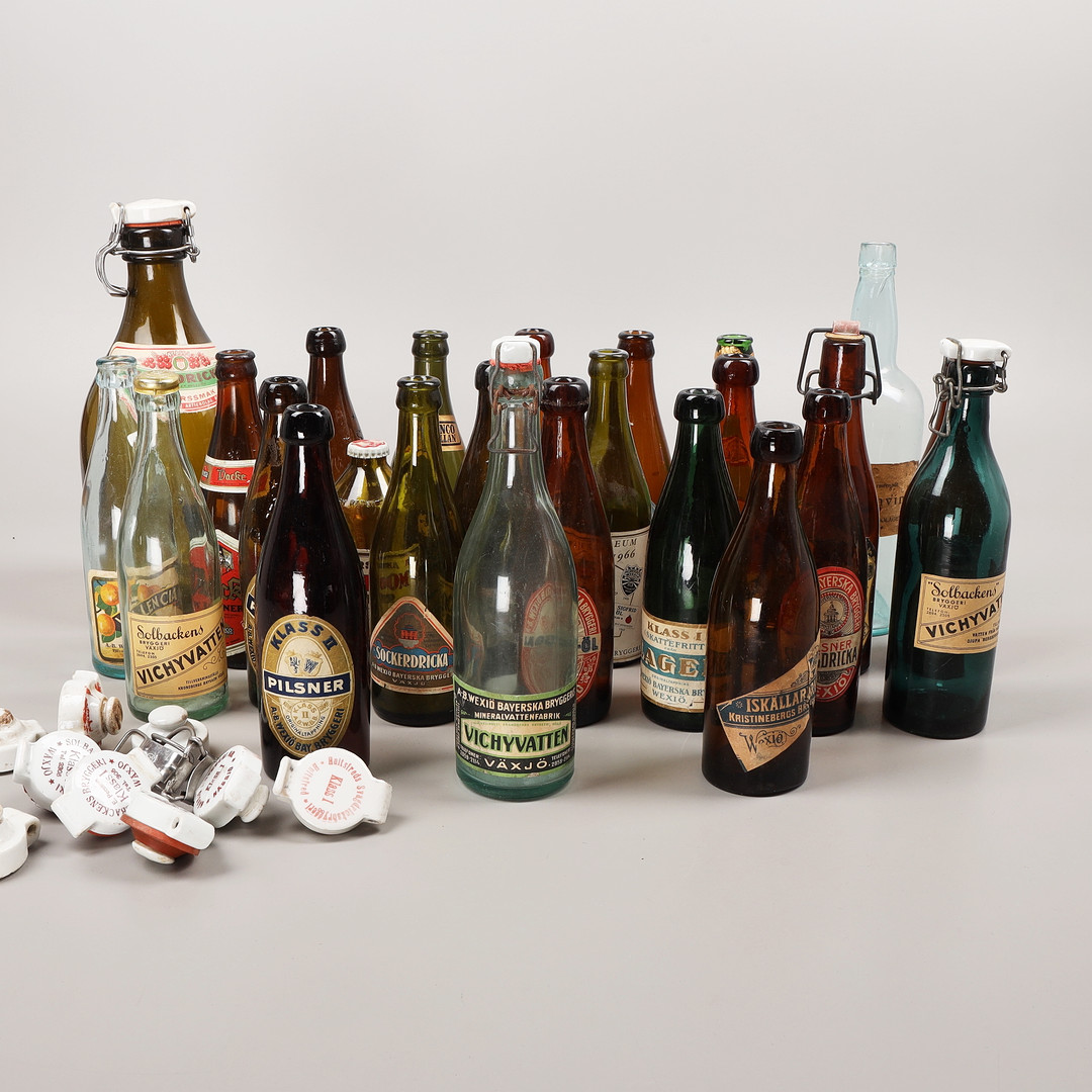 4161956. Drikkeflasker, 25 stk., hovedsagelig Växjö bryggerier, 20. århundrede.
