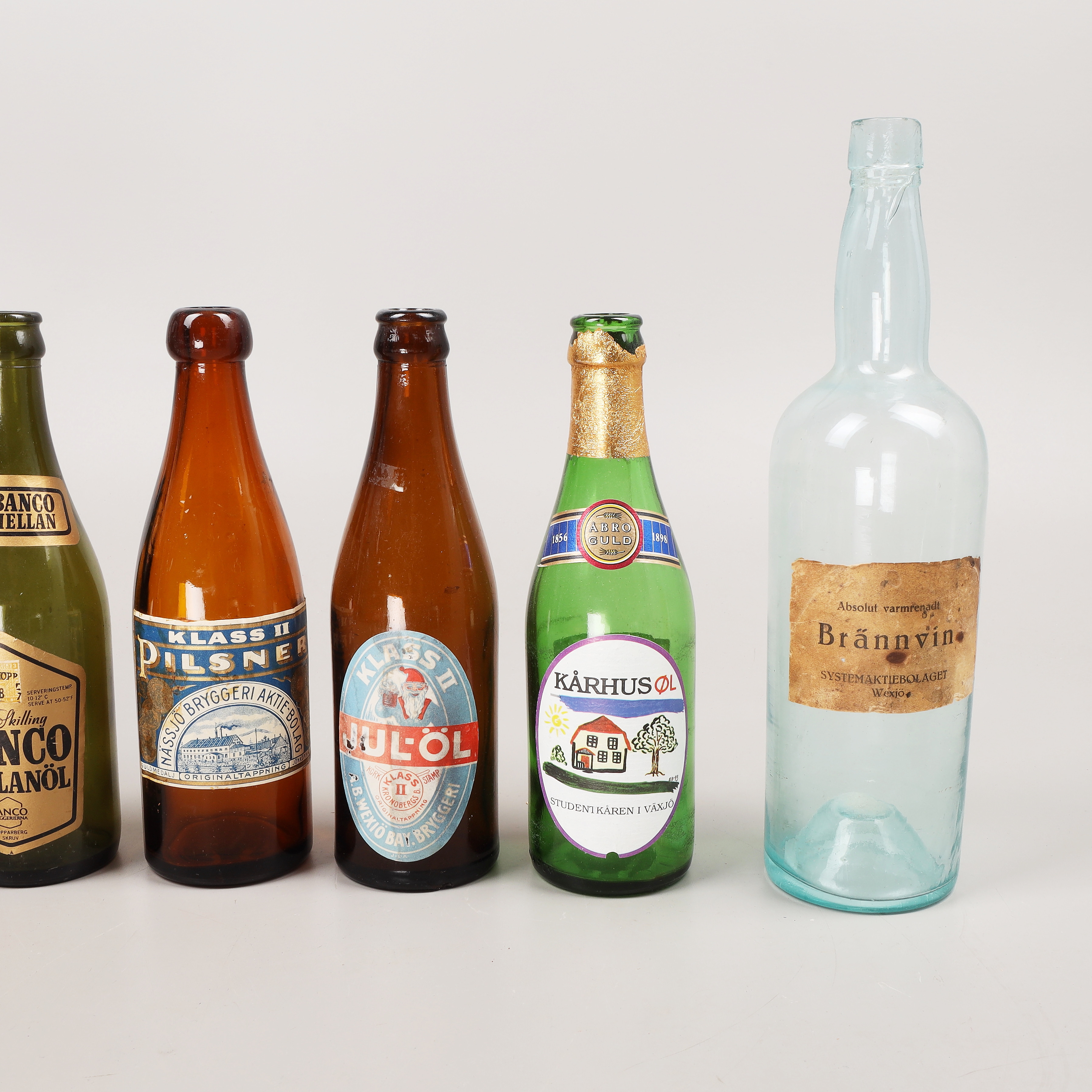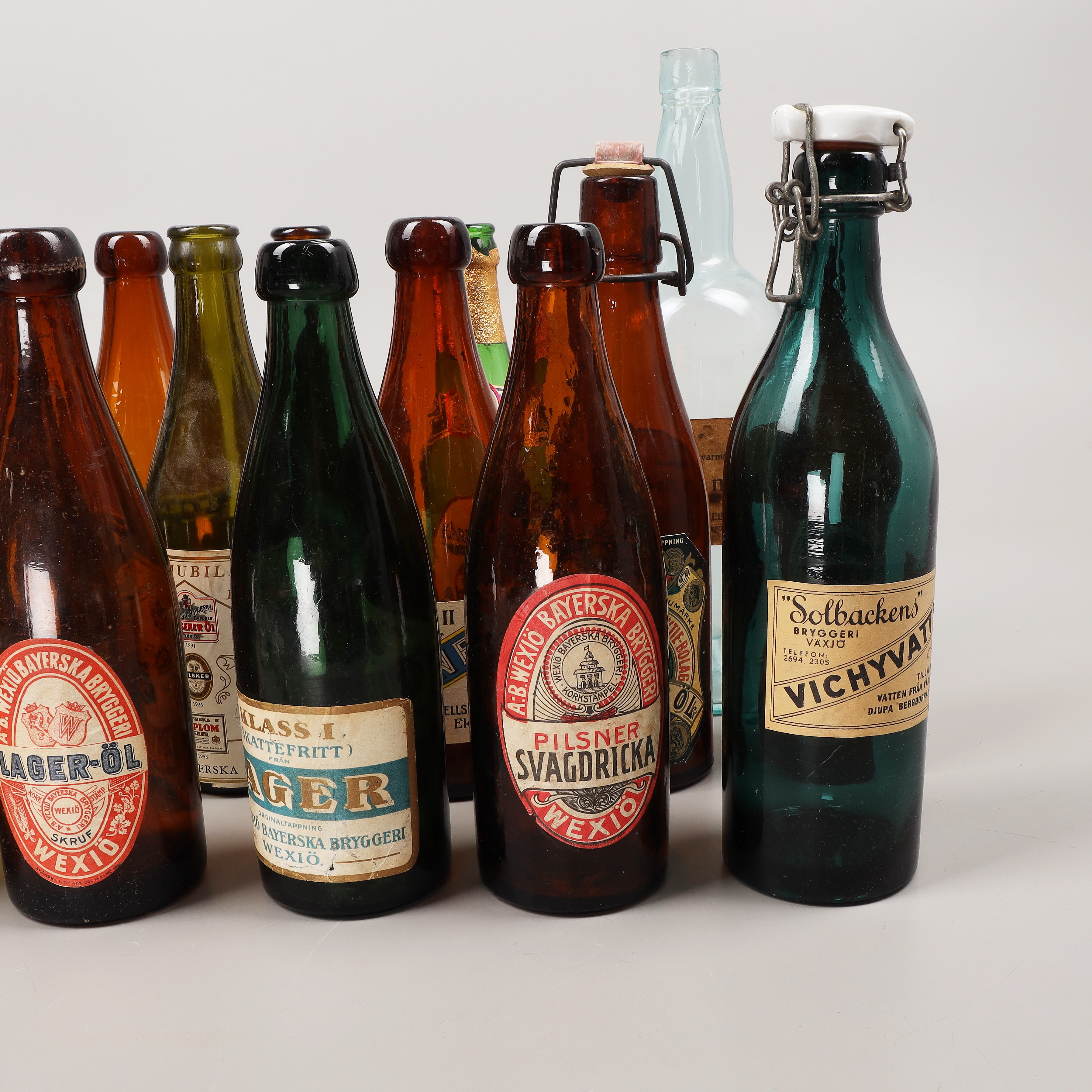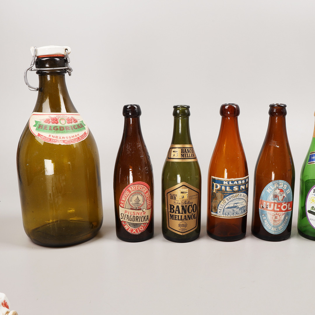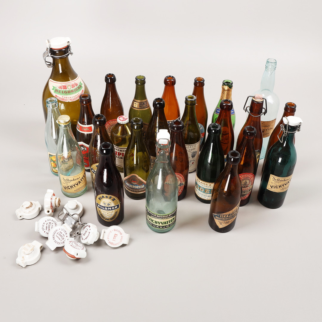 4161956. Drikkeflasker, 25 stk., hovedsagelig Växjö bryggerier, 20. århundrede.
