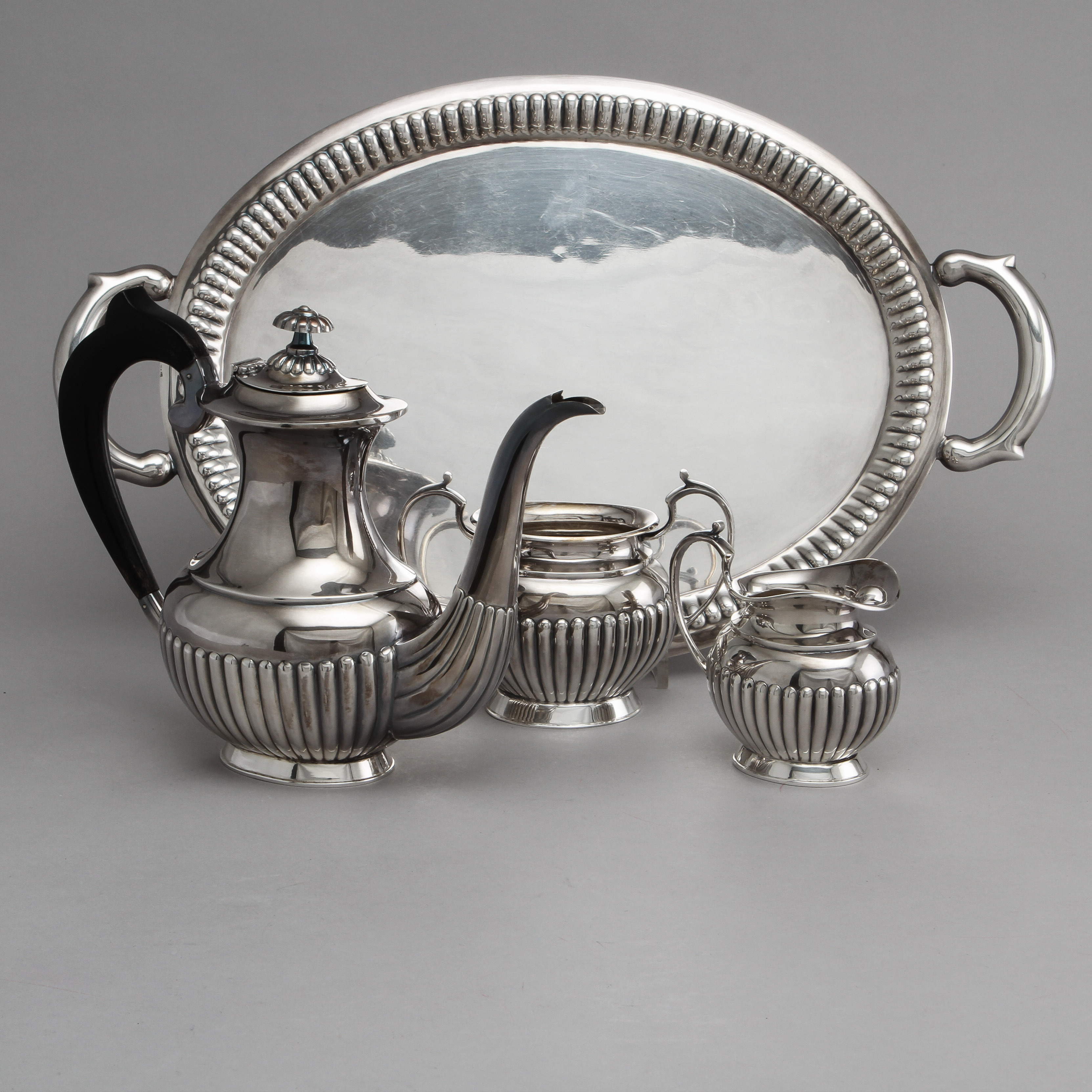 416264. KAFFESÆT, sølv, 4 dele. Vægt 1334 g.