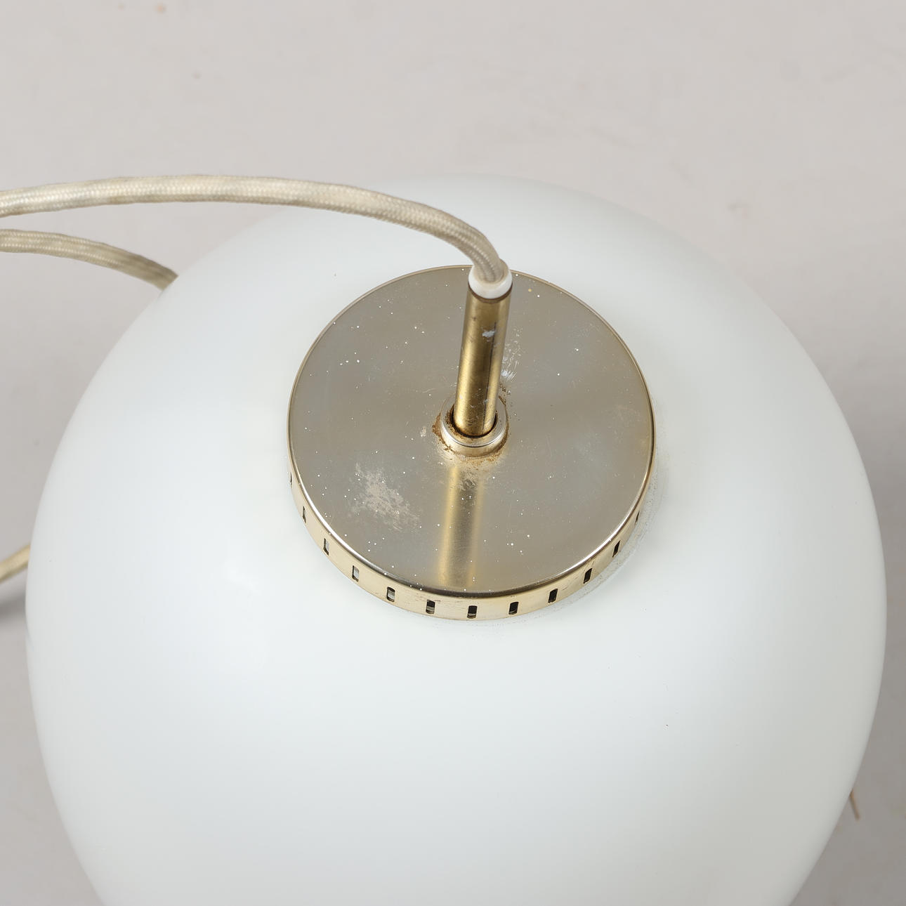 BENT KARLBY. Loftslampe med skærm af opalglas og montering af messing "Kina pendel", Lyfa, Danmark, højde ca. 30/35 cm.