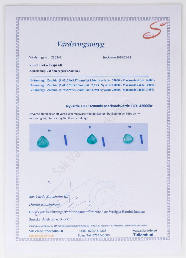 4163355. SMARAGDER, 3 stk, 6,70 ct.