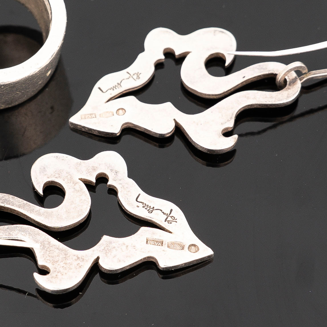 4166187. EFVA ATTLING. Øreringe et par, ring,, Sterling sølv.